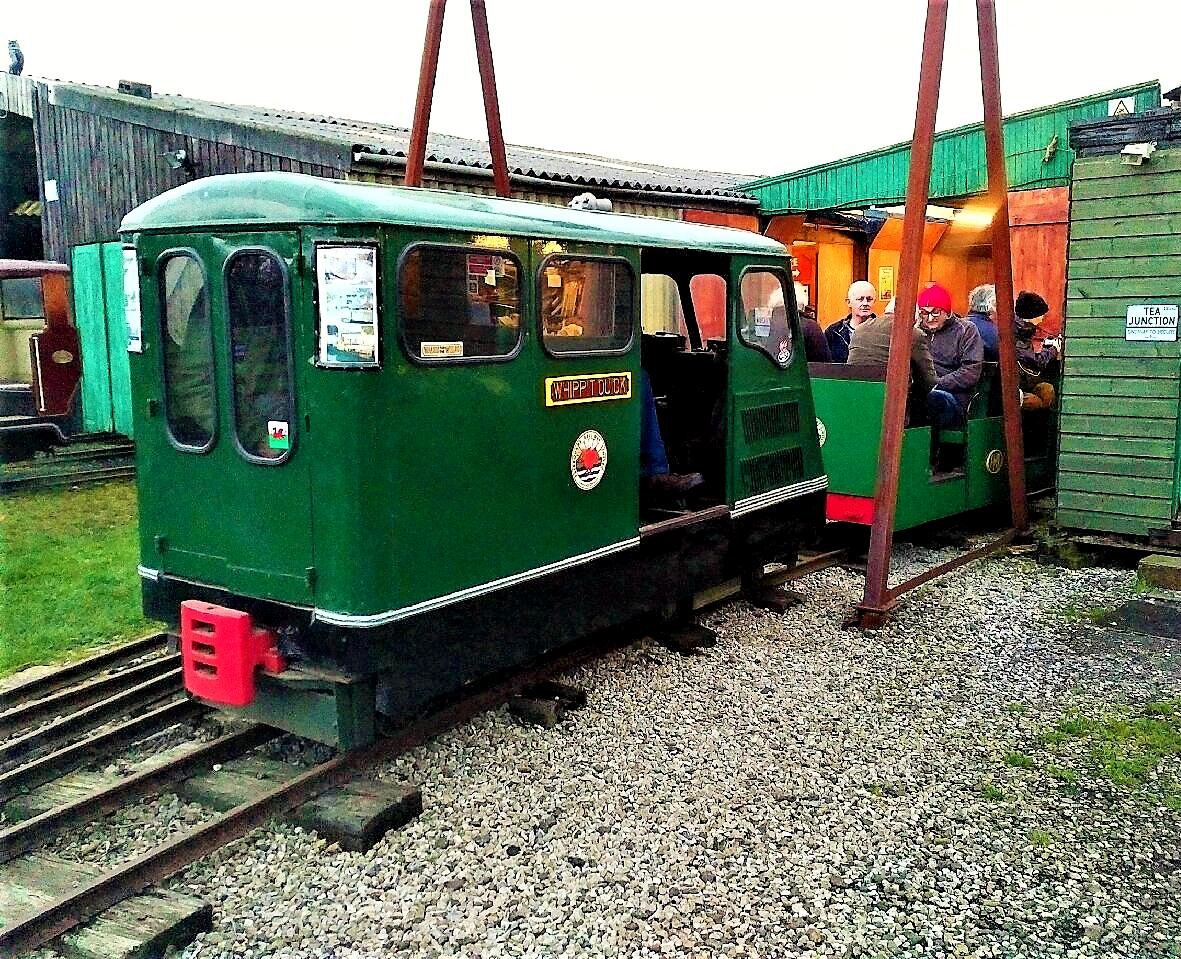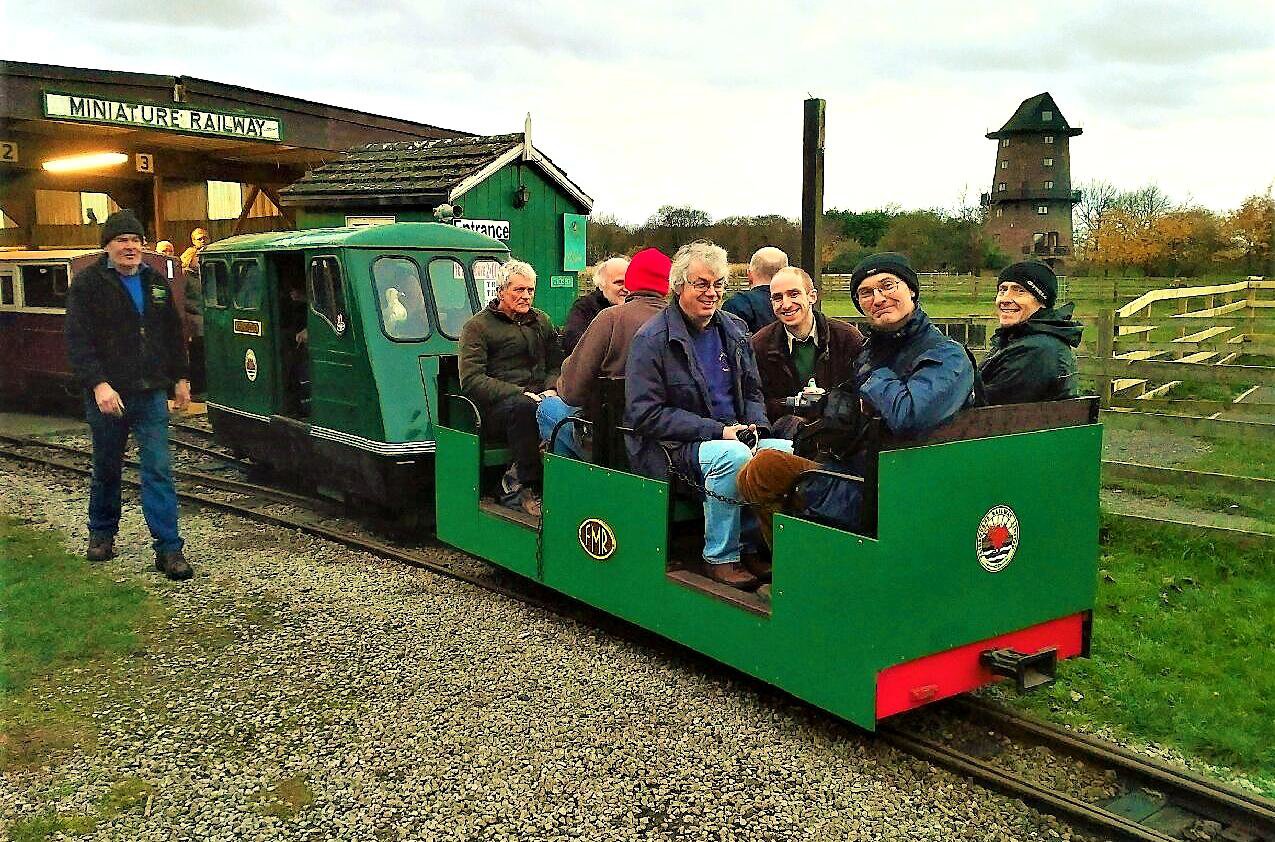 On our return to Windmill Farm time was spent with the railcar Whippit Quick, again in Fairbourne livery and an 8 seat open carriage traversing the line to the turntable, and the 3 sidings to the first shed. This was the extent of rare track available to us, all other track being occupied with other stock. The more intrepid members with a good sense of balance also managed a 'people-power' trip along the 16' 6" (approx.) gauge traverser outside of the workshop. The railway does have an interesting collection of 10 ancient locos from various miniature lines around the country. To conclude the visit a final return trip, again with ''Siận', was made out to Lakeview. Many thanks to Austin Moss, the owner, and his team for opening especially for us on a somewhat inclement Friday afternoon in November.