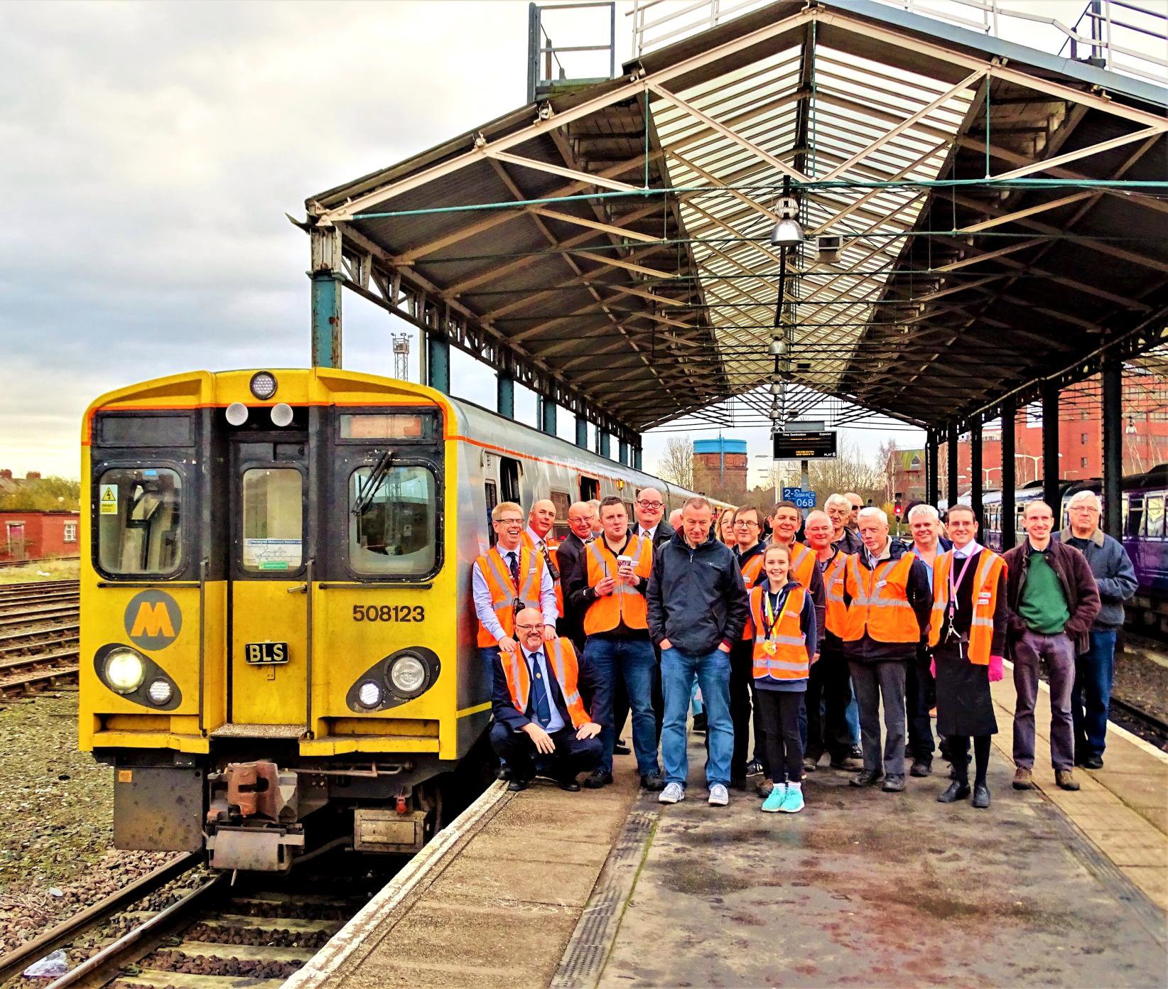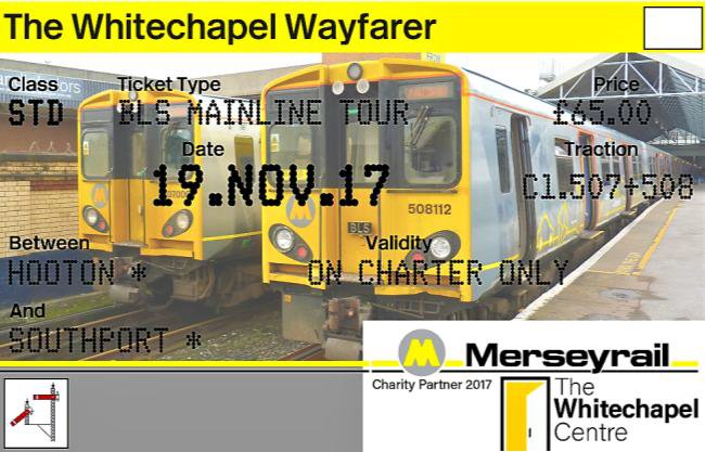 A very respectable 09.12 start from Hooton saw departure of our third recent Merseyrail charity railtours and the sixth 2017 AGM fixture. This year the benefactor was the Whitechapel Centre whose mission it is to prevent and resolve homelessness in the Liverpool area. In true BLS style the day started off unusually. From Hooton to Chester on our first leg, the two middle cars of the six were provided for service train passengers with stops at Capenhurst and Bache.