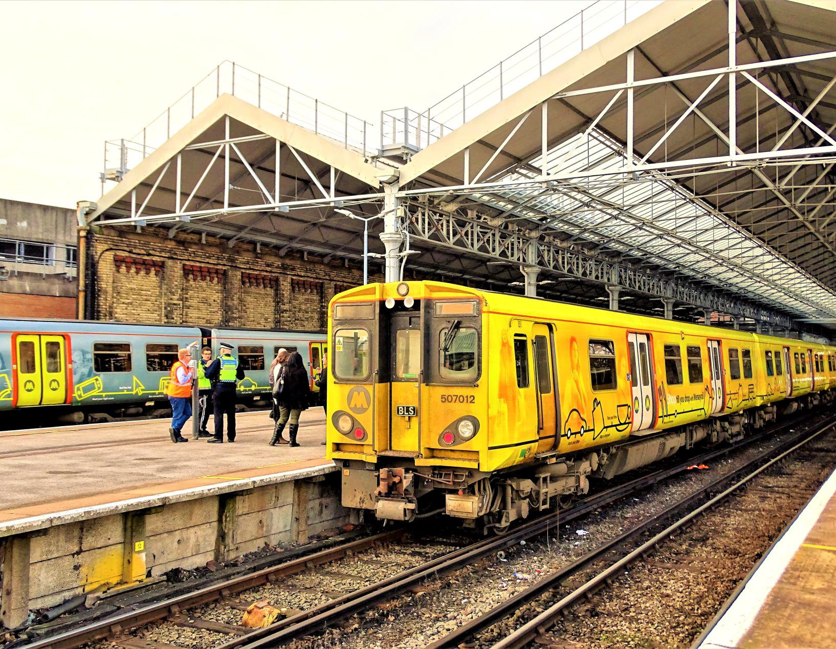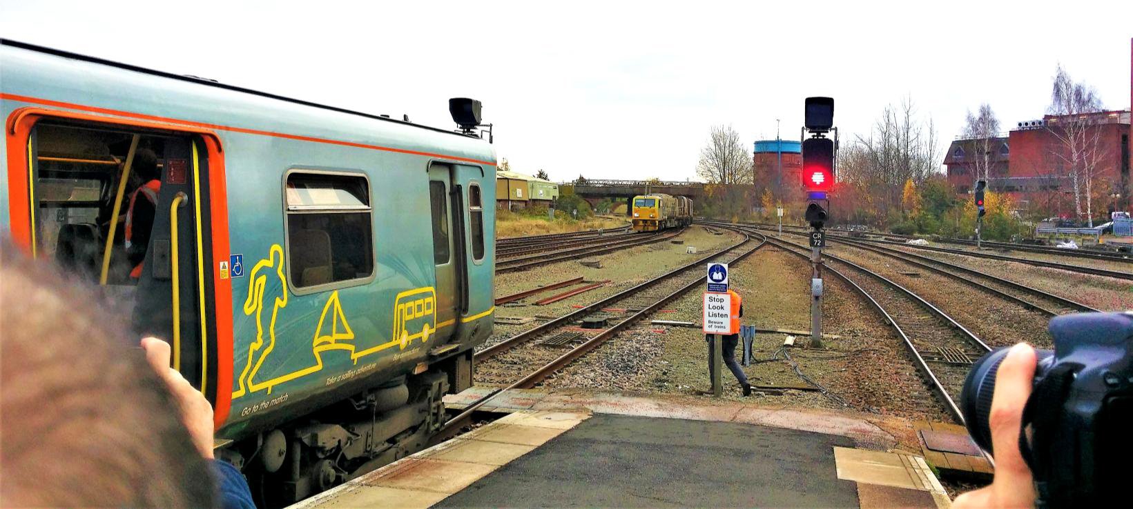 In this cleverly planned tour we then visited Rock Ferry bay P4, once common with terminating EMUs when the third rail stopped there and now quite rare. This was the first 'comfort' break with portable loos.
