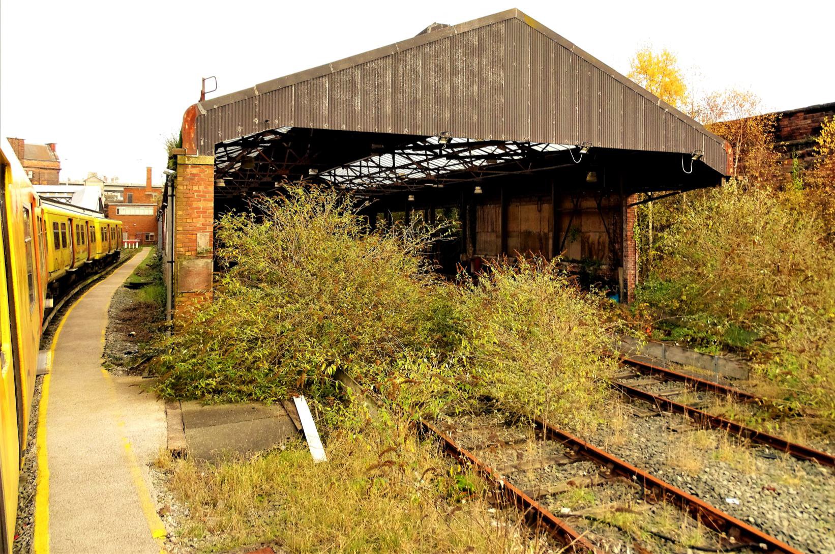 The first highlight was a run to Birkenhead Central, then a double reversal for the long curving trailing crossover at the Chester end and then No.1 Carriage Siding (stop blocks) behind P2. Alongside is the remains of the three road depot with intact track. However, a poor roof structure and asbestos means that, while a useful asset for stock, it would be a costly exercise to rebuild to modern standards.