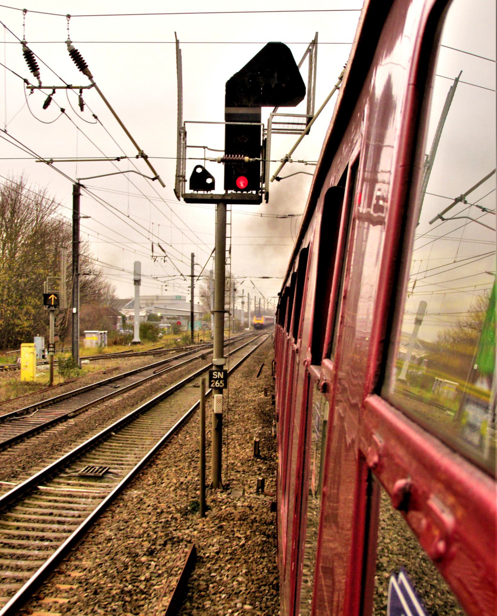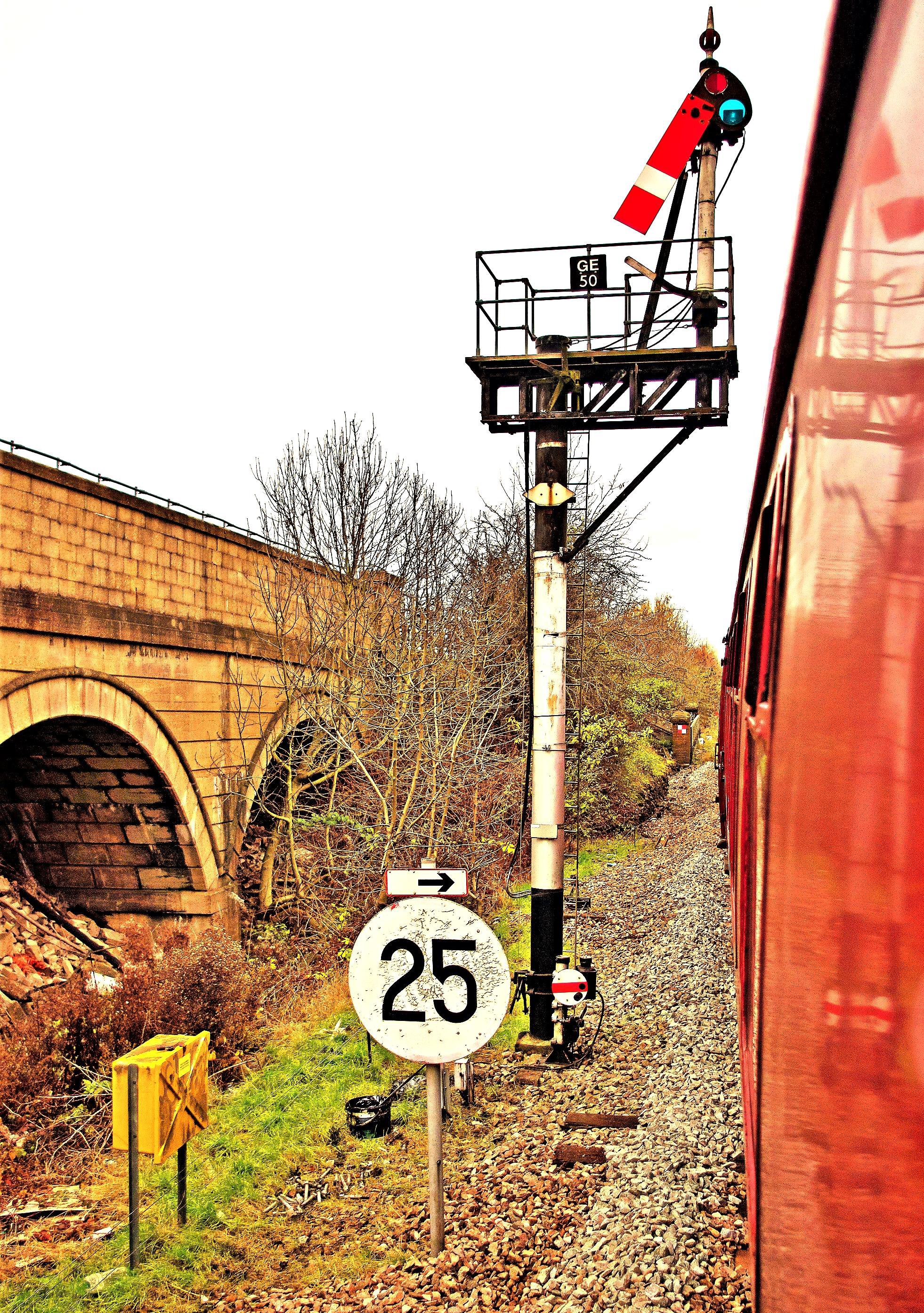 On route from Paddington to a reversal at Greenford West the tour passes Greenford East's Signal GE50 to cross to the former Up Main Line before coming to a halt. Signal GE 50 is the Down Starter, the ground signal (GE13) controlled access to the Up Siding, now disconnected.