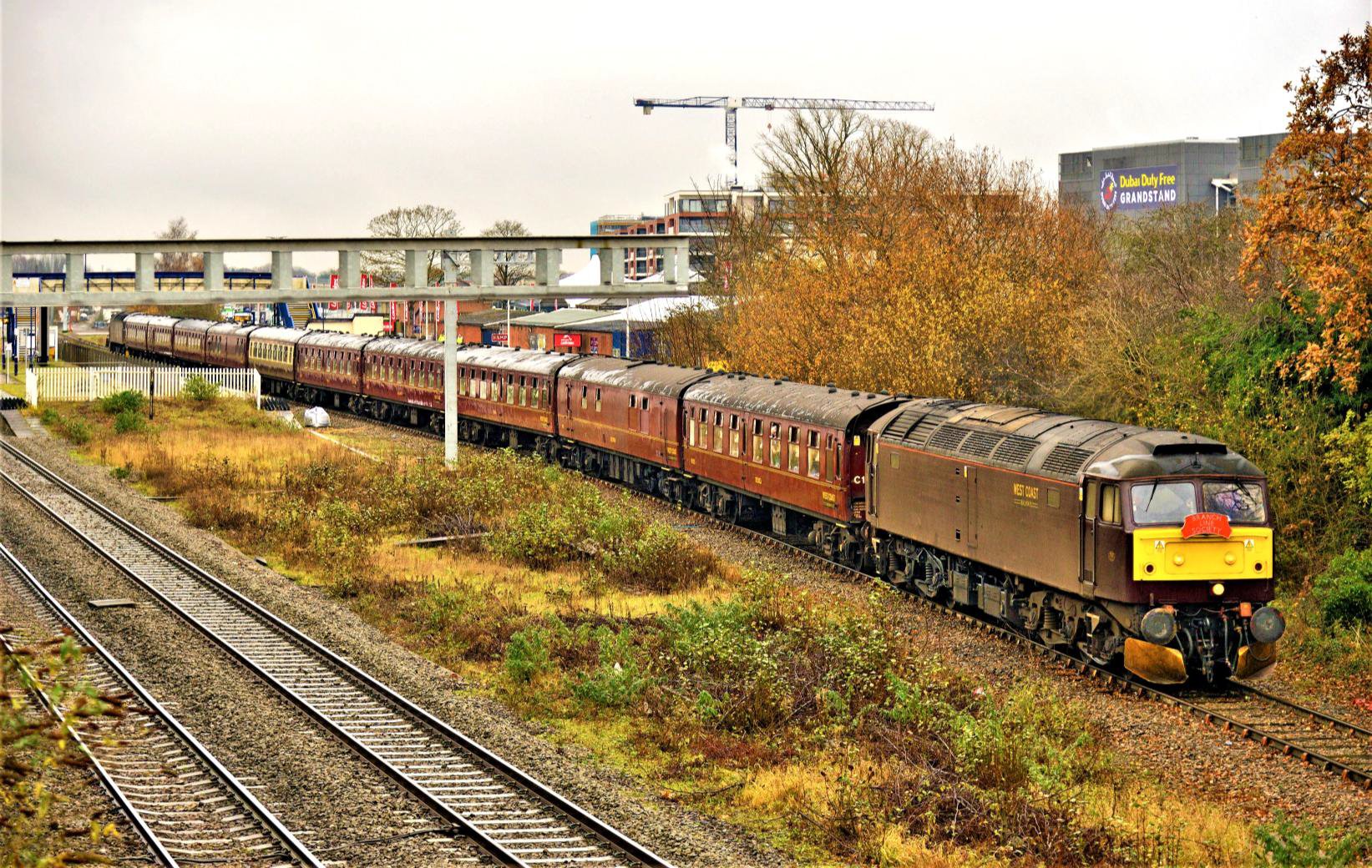 Hawkeridge Curve round to the Melksham line had originally been requested but was not in the final timings as the single track line was being used for diversions. However, the reason the tour did end up doing it on the day was to turn the train for the healthier loco to lead.