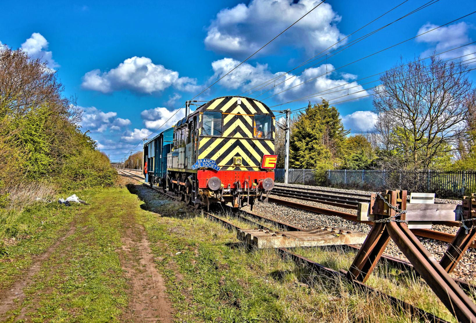 From 6 Apr, a week before, the branch with its loop (and headshunt along the west side of the East Coast Main Line) became a private siding. Engineer's Line Reference FWR2 ceased to exist. The new NR boundary is 151m 78ch - just north of the loop, beneath the A6182 'Great Yorkshire Way' overbridge. The NR part is still called 'Rossington Colliery Branch' then it becomes 'Rossington Private Sidings'. Before booked departure time, participants were allowed to walk over to the internal loco 08527 (which saves main line trains having to be top & tailed or propelled on the branch) for a photo. This was under controlled conditions - before boarding our very smart looking (both outside and inside) riding vehicle 'Molly' for the trip. It began by heading towards the buffer stops at the end of the remaining line near the site of the former Rossington Main Colliery. Coal production ended on 31 Mar 2000 due to the many geological faults in the coal seams and the pithead gear was demolished in 2007. The spoil tip was reworked, extracting more power station coal that was removed by rail as was the spoil (inert capping for part of Roxby tip near Scunthorpe). The landscaped site is now disappearing under a housing development. After reversal, it was back to the boarding point and onwards, curving sharp right to follow the River Tome (on the left) with Rossington Drain to our right. Approaching the East Coast Main Line at Rossington Colliery Jn Loop the main line connection came in left from Doncaster. Our line split to form a run round loop and we proceeded towards the buffers (well, actually sleepers before the buffers) at the other far extremity of the branch near the ECML.