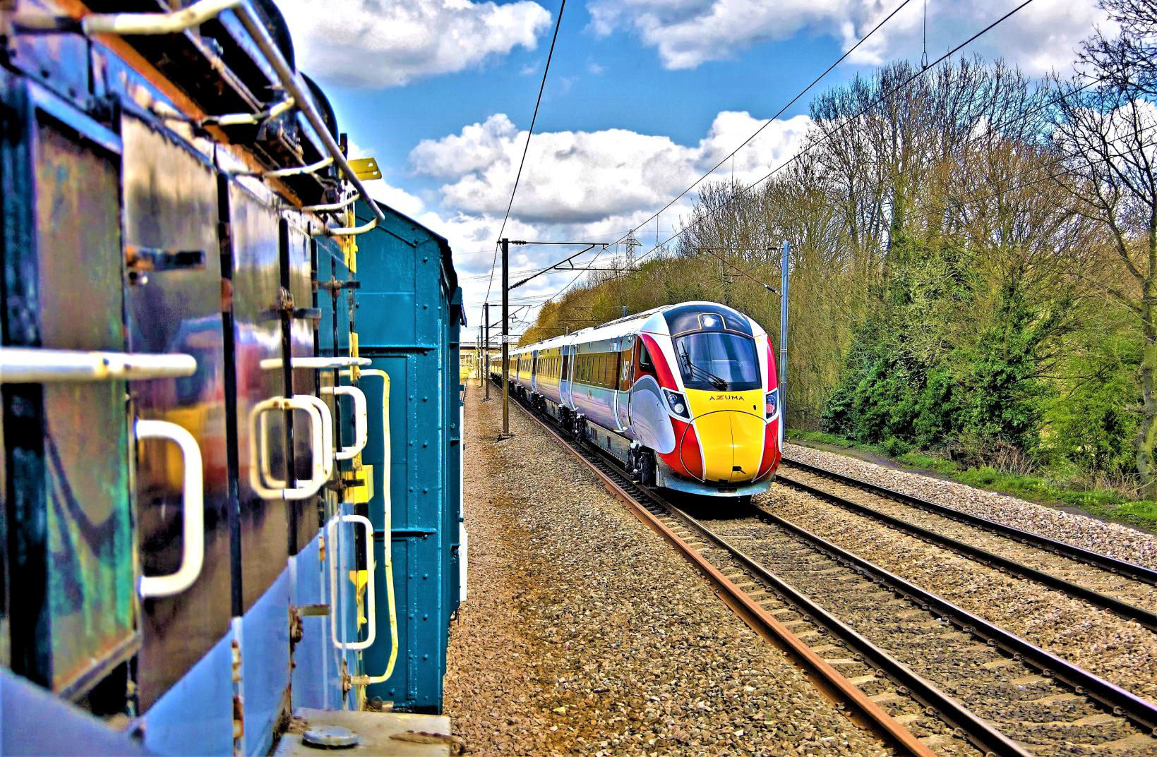 'Molly' about tospeed past an Azuma going north on the Down main towards Doncaster.