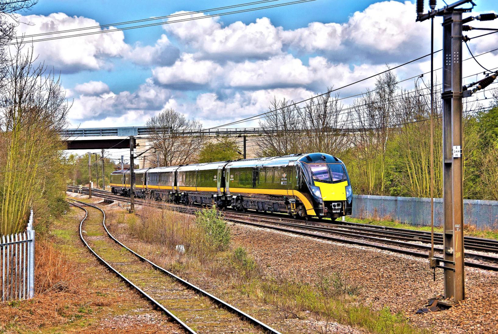 Loversall Carr Jn, an Up Grand Central Class 180 Adelante heads for London with the A6182 'Great Yorkshire Way' overbridge in the background. The branch connection to NR is seen left (still part of the private sidings now here).