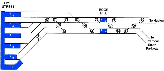 156468 arrived a little late and was quite full. We all squeezed on and headed west via Hunts Cross Chord. After Liverpool South Parkway we crossed to the Down Ditton Slow (a regular Down move, but the Up equivalent is only booked for one train the 07.45 (SuX) Lime Street to Manchester Oxford Road). Lime Street P8 was reached via crossover 'E'. There was a 33 minute break until the next manoeuvre, so time to look round. The next platform was P1, where we boarded TPE 185141. As is customary the group took up seats at the rear of the train and on departure the female conductor kept the back cab door open (thank you) giving an interesting view of the tunnels climbing up the grade to Edge Hill. Our destination was the third 'Green' station today - Lea Green (appropriately our member Peter Green was in the group. The furthest participant had come from Sunbury-on-Thames). After 11 minutes we were soon on board 185145 back via crossover 'G' to Lime Street P1.