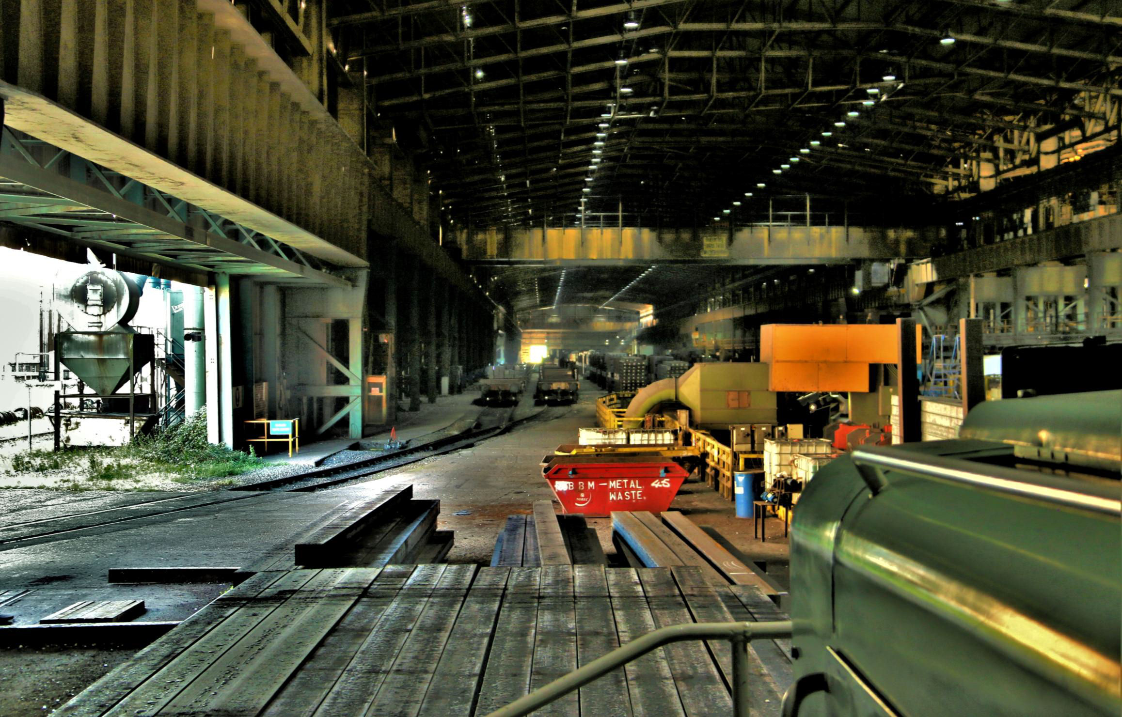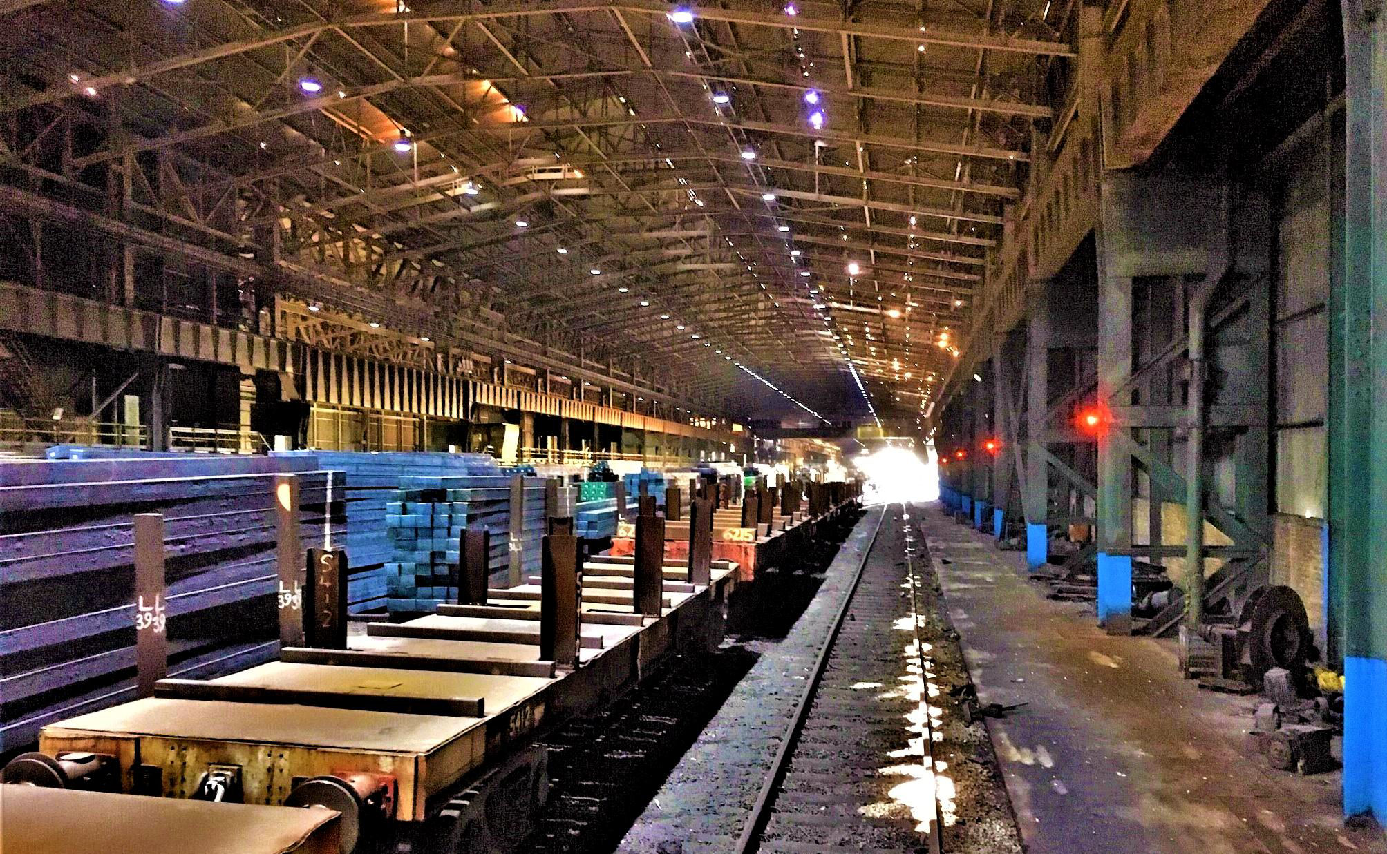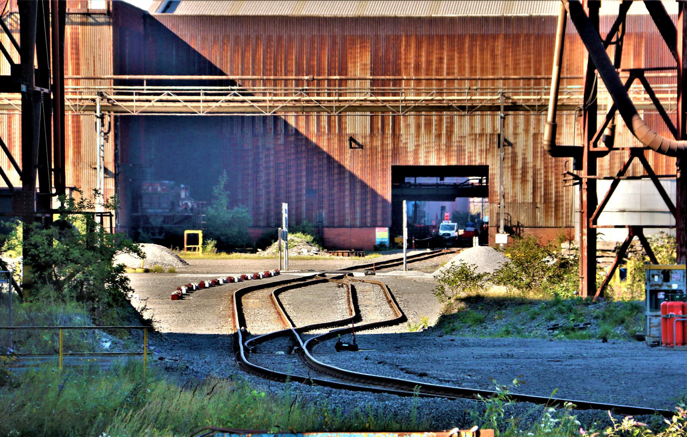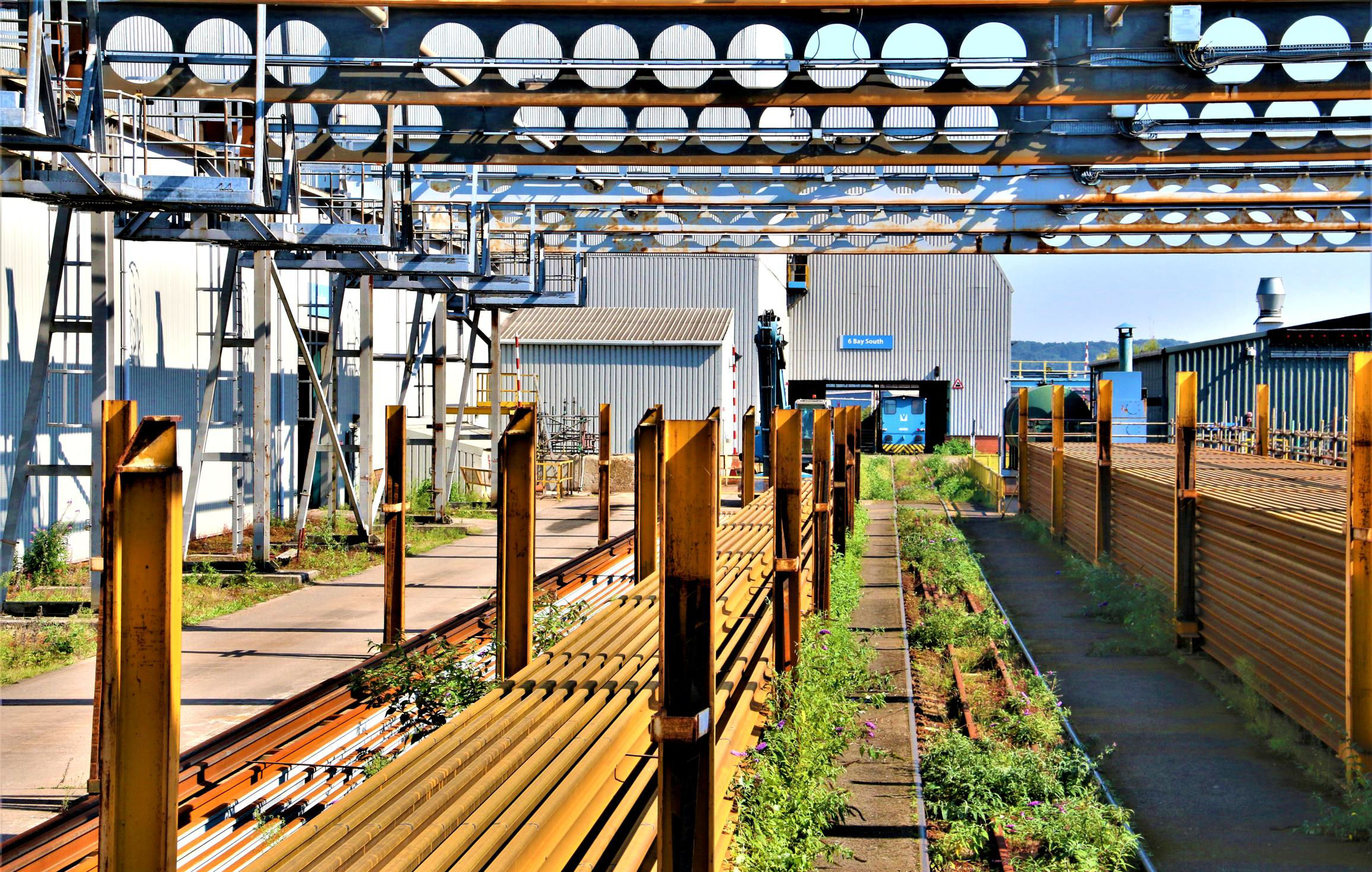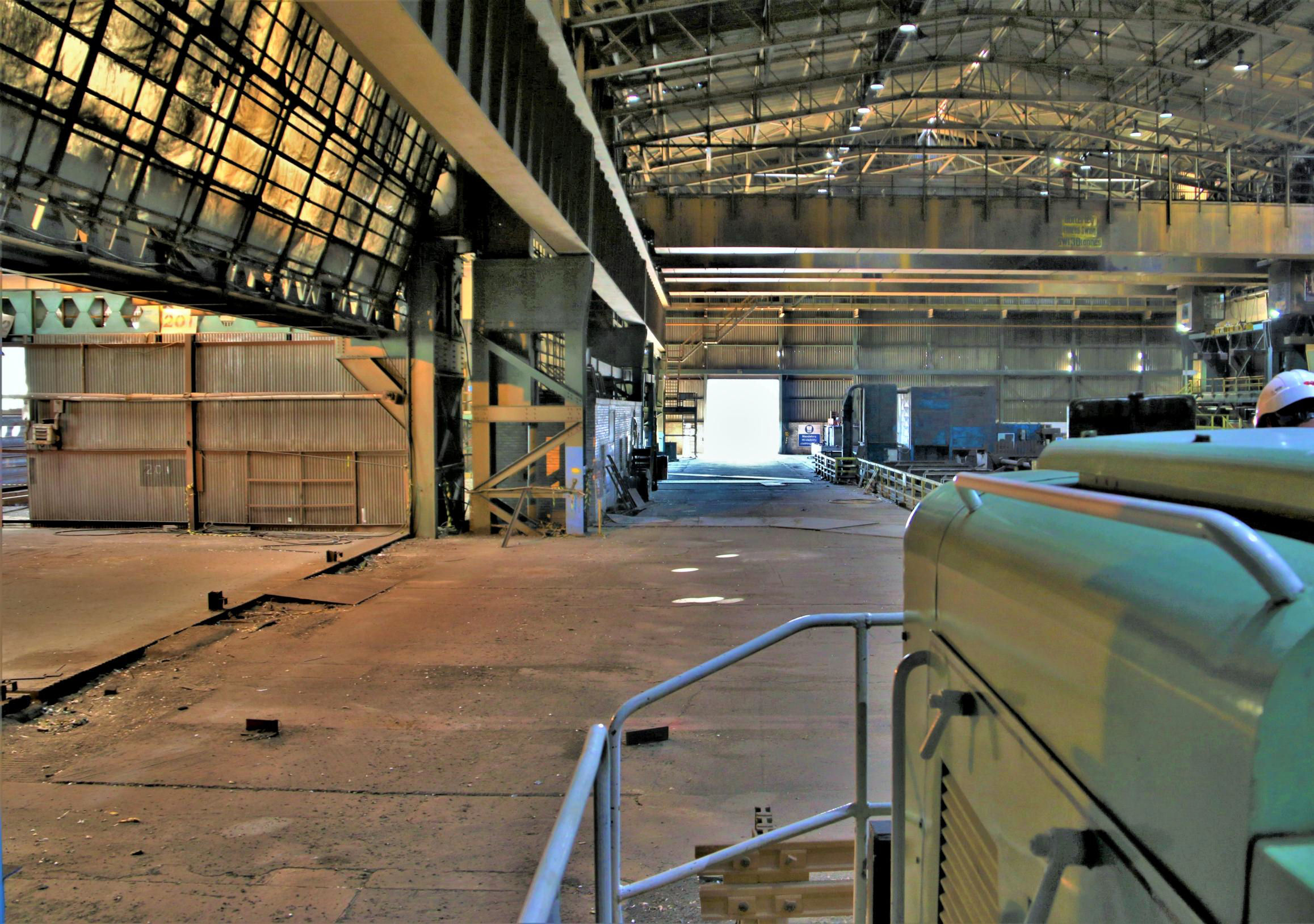 Back down to earth and where next? Just for a change, back round the 'Angle' to the Mills Exchange Sidings, but this time down Road 11 to the Former Bloom & Billet Mill (BBM). 'Former' as in 'used to be' rather than anything to do with forming steelwork - this two mile long production line was moved to India. Here I scored my third bit of track when we ventured into the building down BBM5 (left hand line) to the end of the line. For good measure BBM3 (right hand line) also ended up on the map before our return to Mills Exchange Sidings to reverse. These were possible due to the reduced activity at the whole works which was on summer shutdown, just ticking over, for holidays and maintenance. An overhead crane was being maintained above the Furnace Road - a continuation of the line through the end of the Former BBM. This line was therefore under possession which extended to the original and recently opened new through lines to Concast. This possession was due to be removed the very next day! One for our next visit then; it was also noticed that its new loop at 'the Subway' was complete.