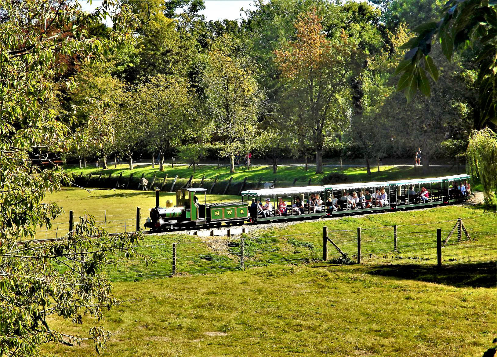 The 15" gauge lengthy Marwell Wildlife Railway (MWR) at Marwell Zoo.