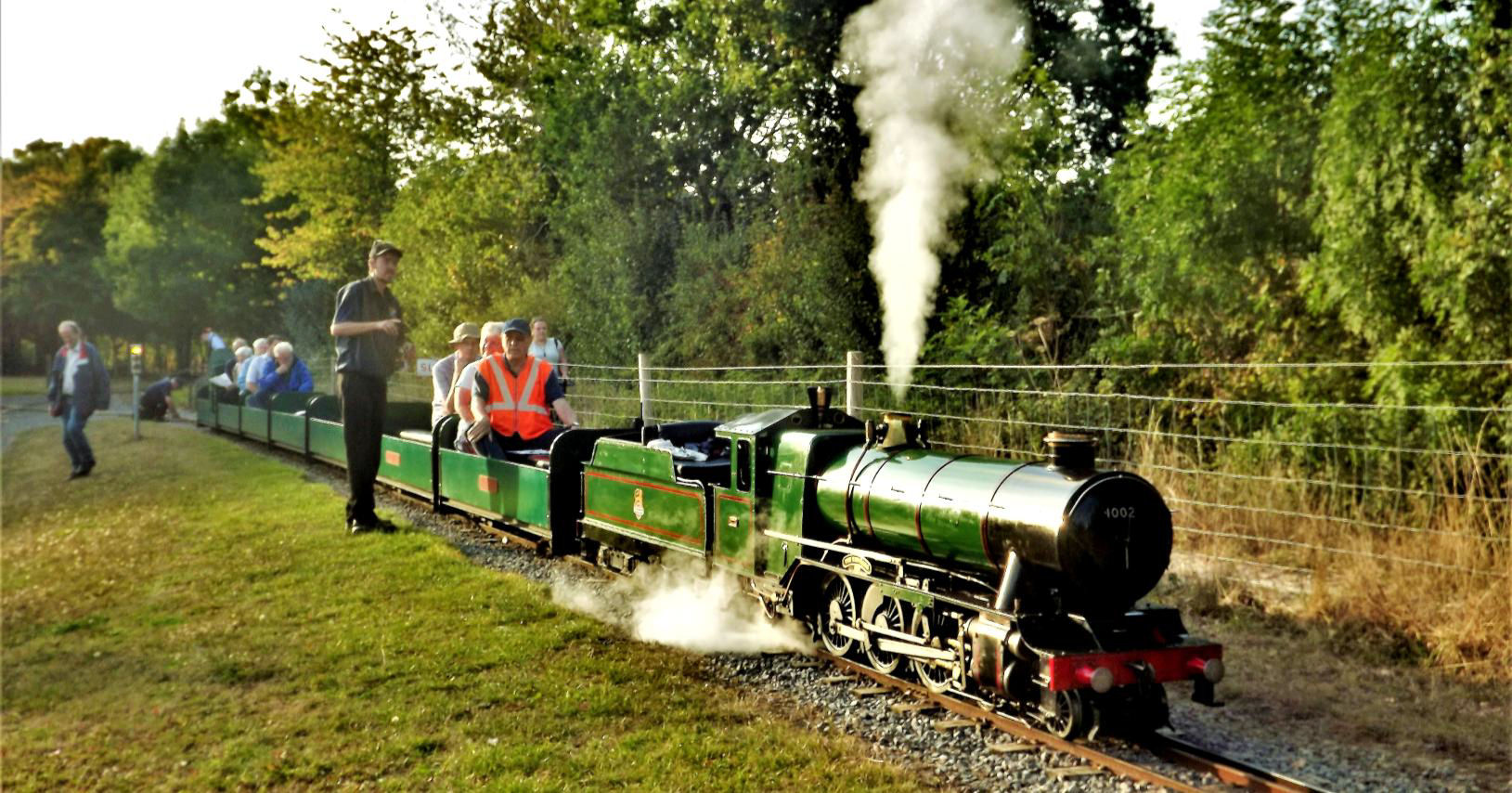Eastleigh Lakeside Railway with 7¼/10¼" gauge. Here Bill had arranged an 'all lines' tour but we had to wait until after the last public service had arrived back, around 17.00. Our steed was 4-6-2 No1002 'The Empress' of 1933. Once all were aboard, and after the briefing on the plan of action, we set off from Eastleigh Parkway bay P1. This started with a set back - but actually a positive move - to the buffer stops.