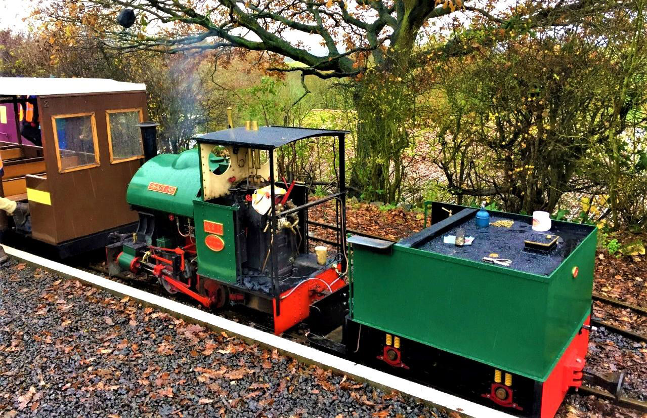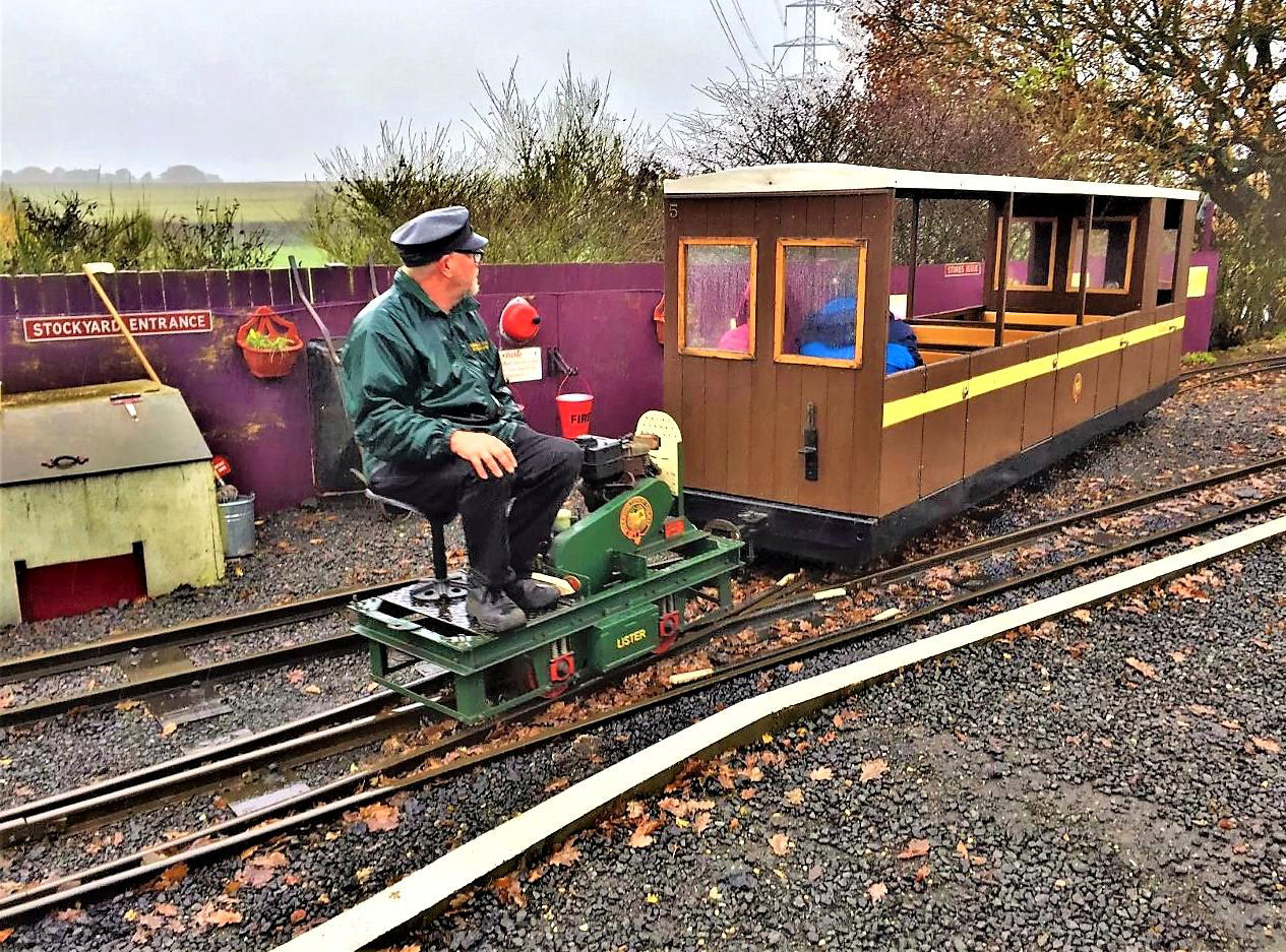 We started at Loxley, green still on this mid-Nov day. The party was split into two, each with one loco and a semi-open coach (which Little John might have struggled to fit in), to maximise coverage and haulage. I started with the diminutive Lister, driven by the enthusiastic owner. So enthusiastic, in fact, that he gauge cleared the route into the shed for us by taking a hacksaw to the doorstop, allowing the shed door to open all the way. He certainly had a handle on what we wanted. Maximum coverage achieved, we ran on to the run round loop and back over the other shed road to the doors (this line was chock full of stock on the inside). We then had the run of the run round loop before backing into the platform. The layout has changed here recently, with realignments due to the previous unusual island replaced by a conventional side platform.