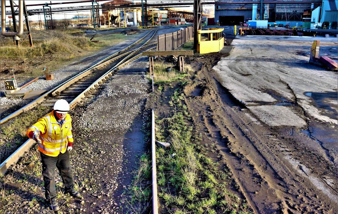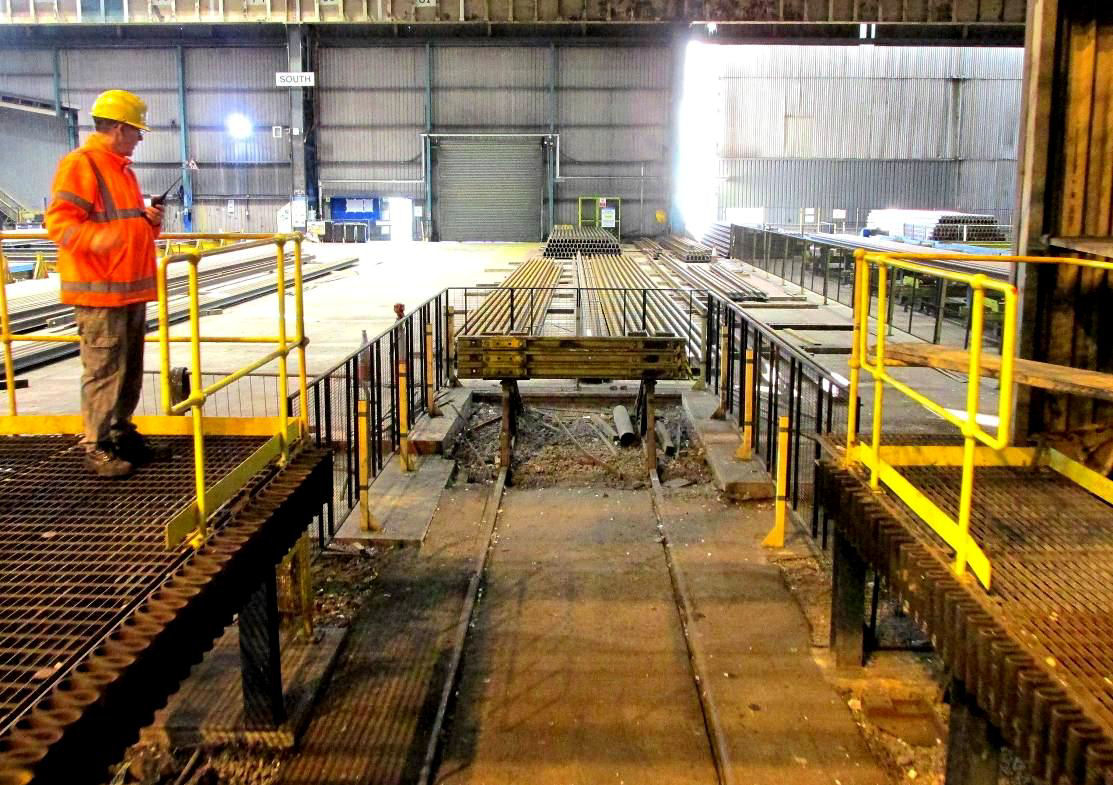 On the middle line of the BOS Plant itself, looking towards the end of line; left is the hot torpedo queue (empties this end).