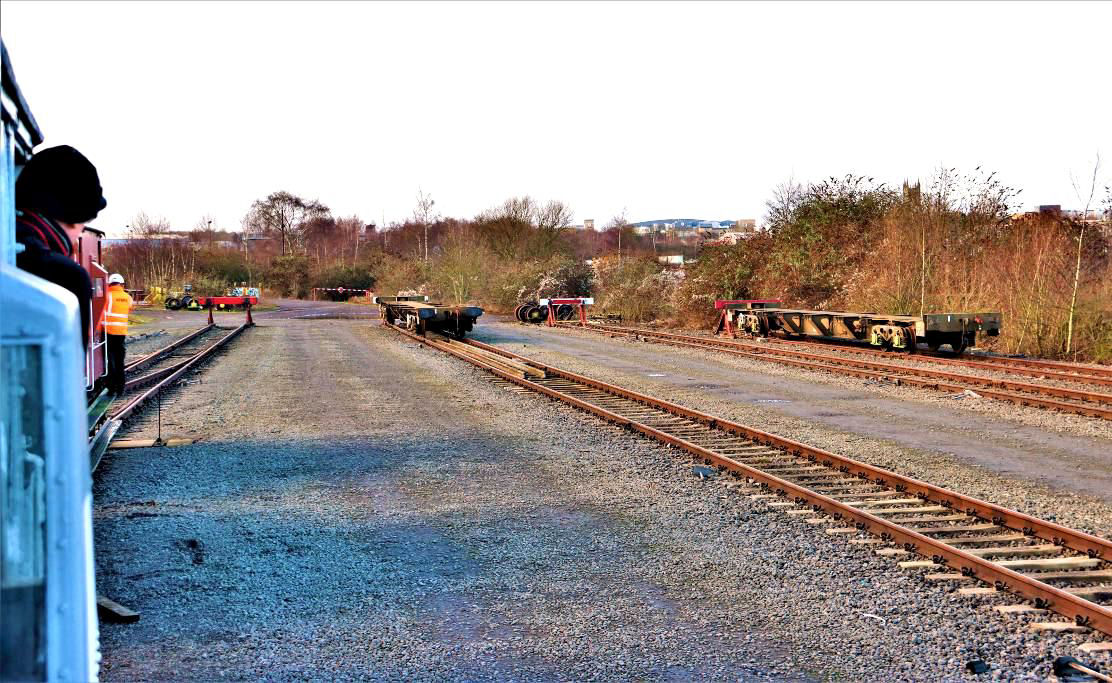 View forward as we slowly approach the stops in Rail Service Centre Bay 5 guided in by Glenn Britcliffe, Mr Appleby Frodingham Railway Preservation Society himself, on the left.