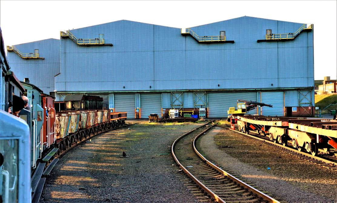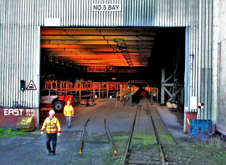 Inside the cavernous Rail Service Centre on Road 5 with the end of line ahead.