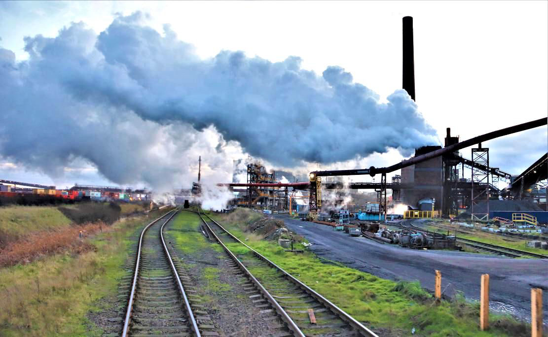 BOS Yard Line 4 - see earlier for an end of line close up. Top middle left is the Slab Yard, then Concast with the BOS Plant far right.