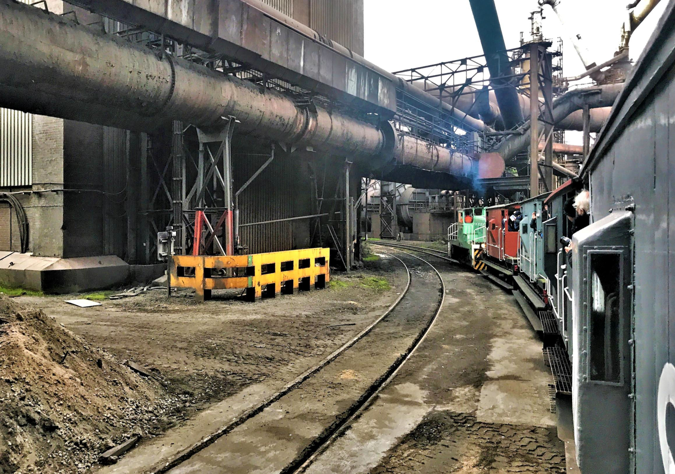 An area of outstanding natural industrial beauty... our tour on the approach to the blast furnaces.