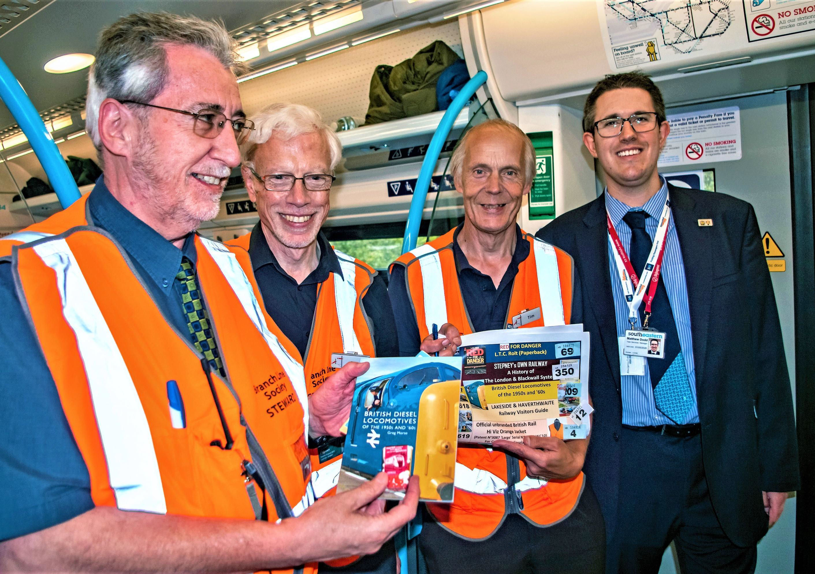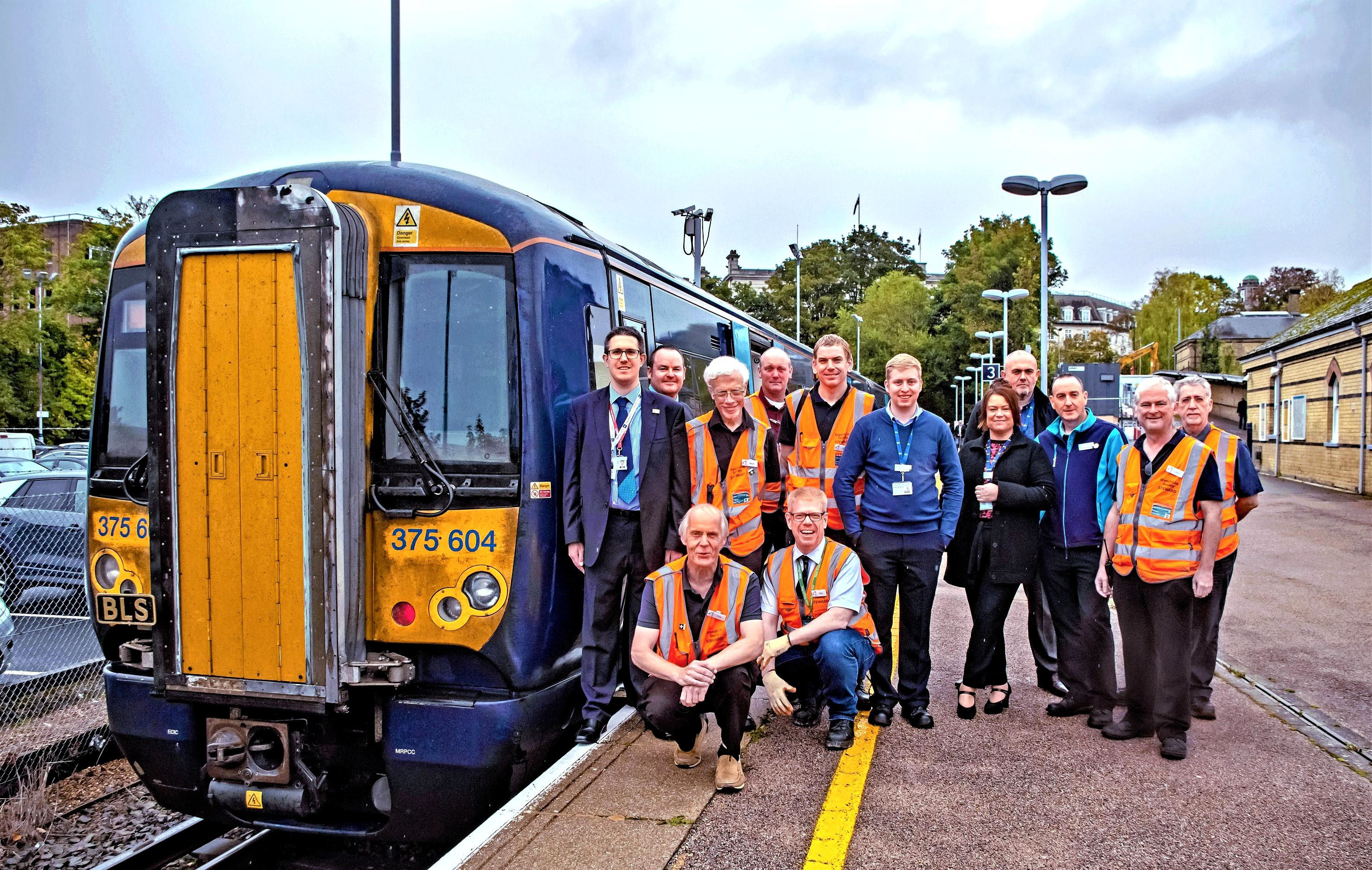Some sort of identity parade on Maidstone East bay P3 during the lunch break? Some Society Stewards and Southeastern staff.