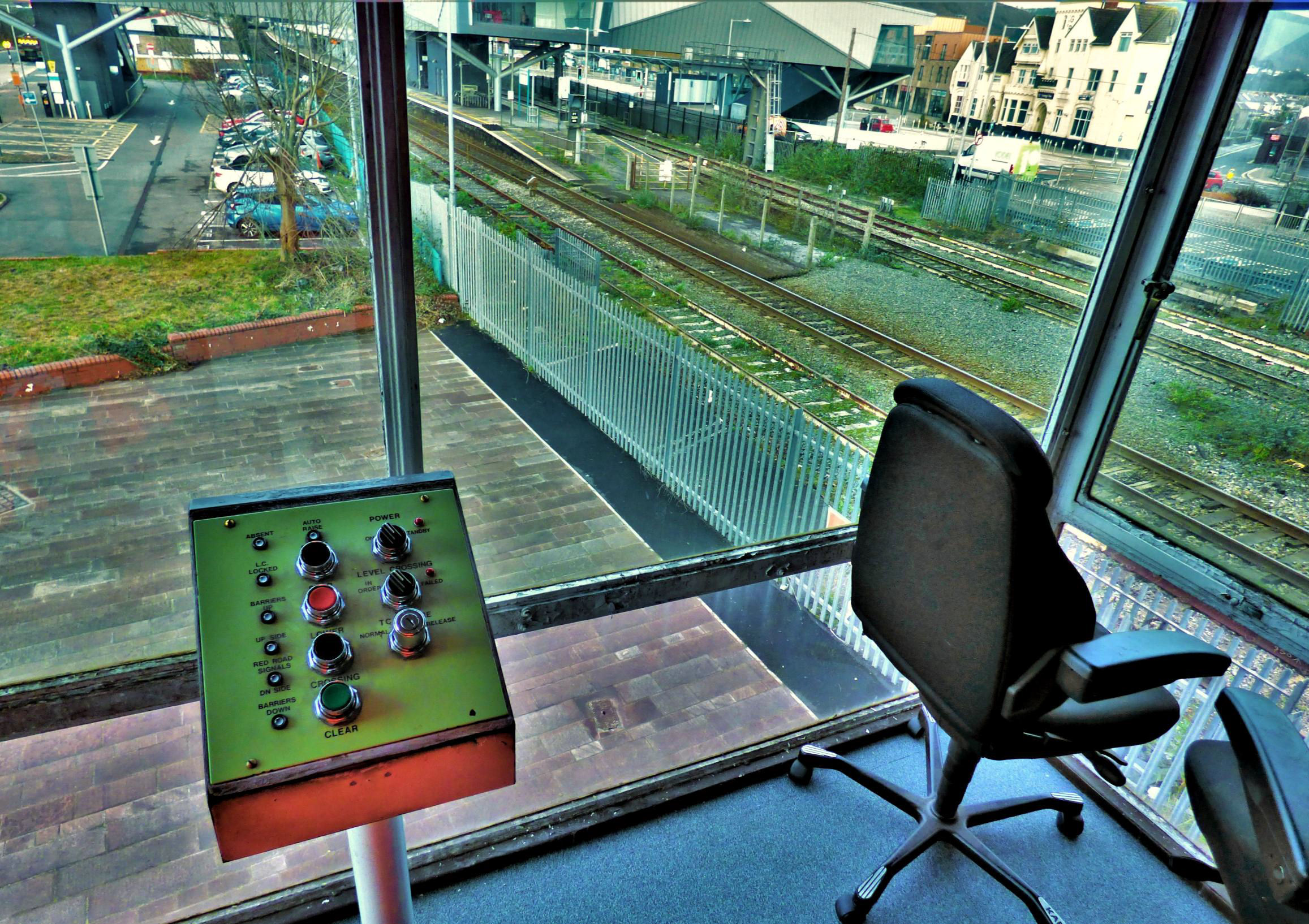 The non-crossing controls with a nice view of Port Talbot Parkway station, the Down Relief is left and Up relief far right.