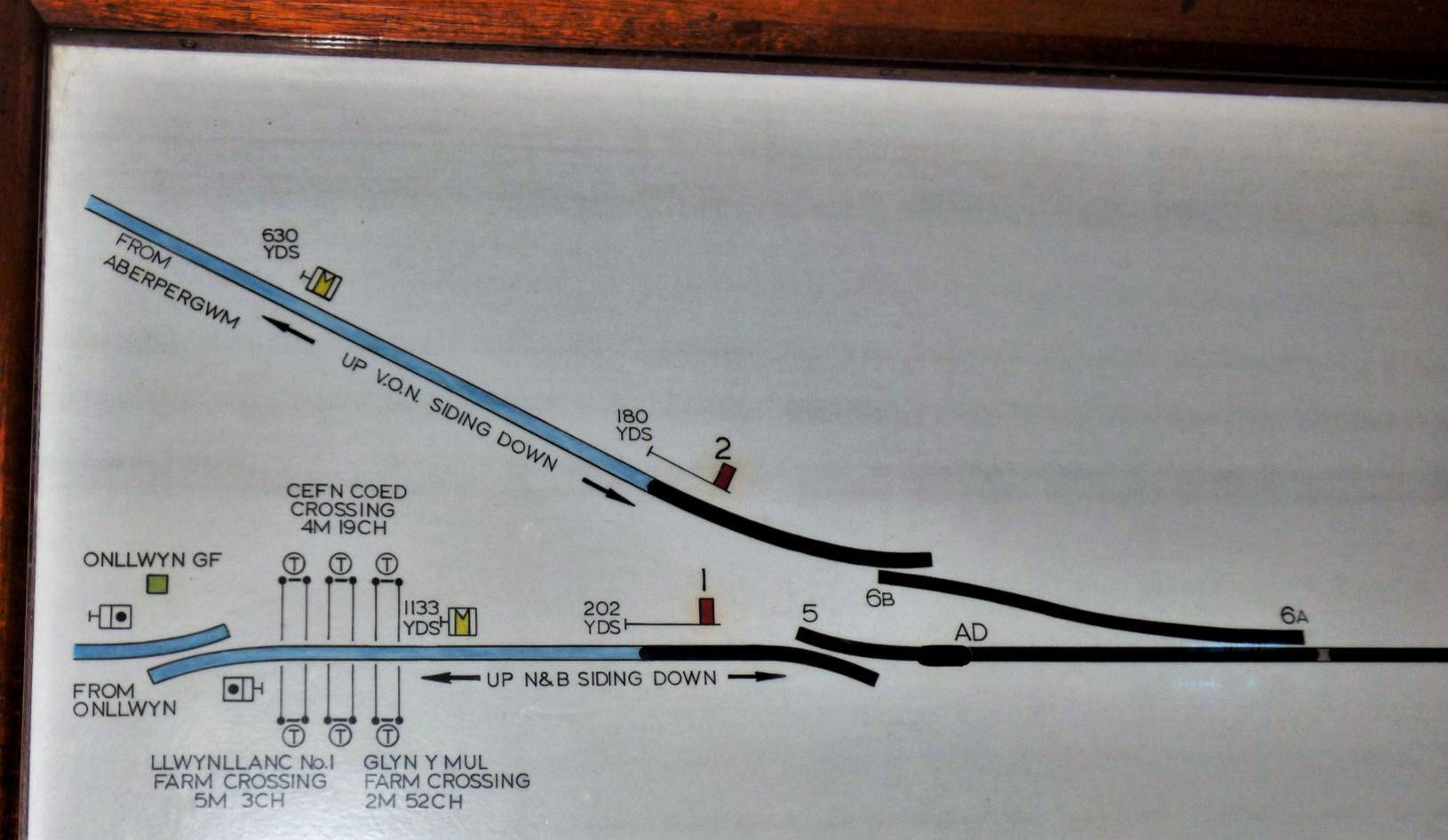 The box retains the 'Tondu - Blaengarw' single-line staff although the Garw Loops are officially worked as sidings (as opposed to a staff section). The staff is needed by drivers using these loops to run round, because the key on the end of the staff releases the ground frame at the eastern end of the loops.
