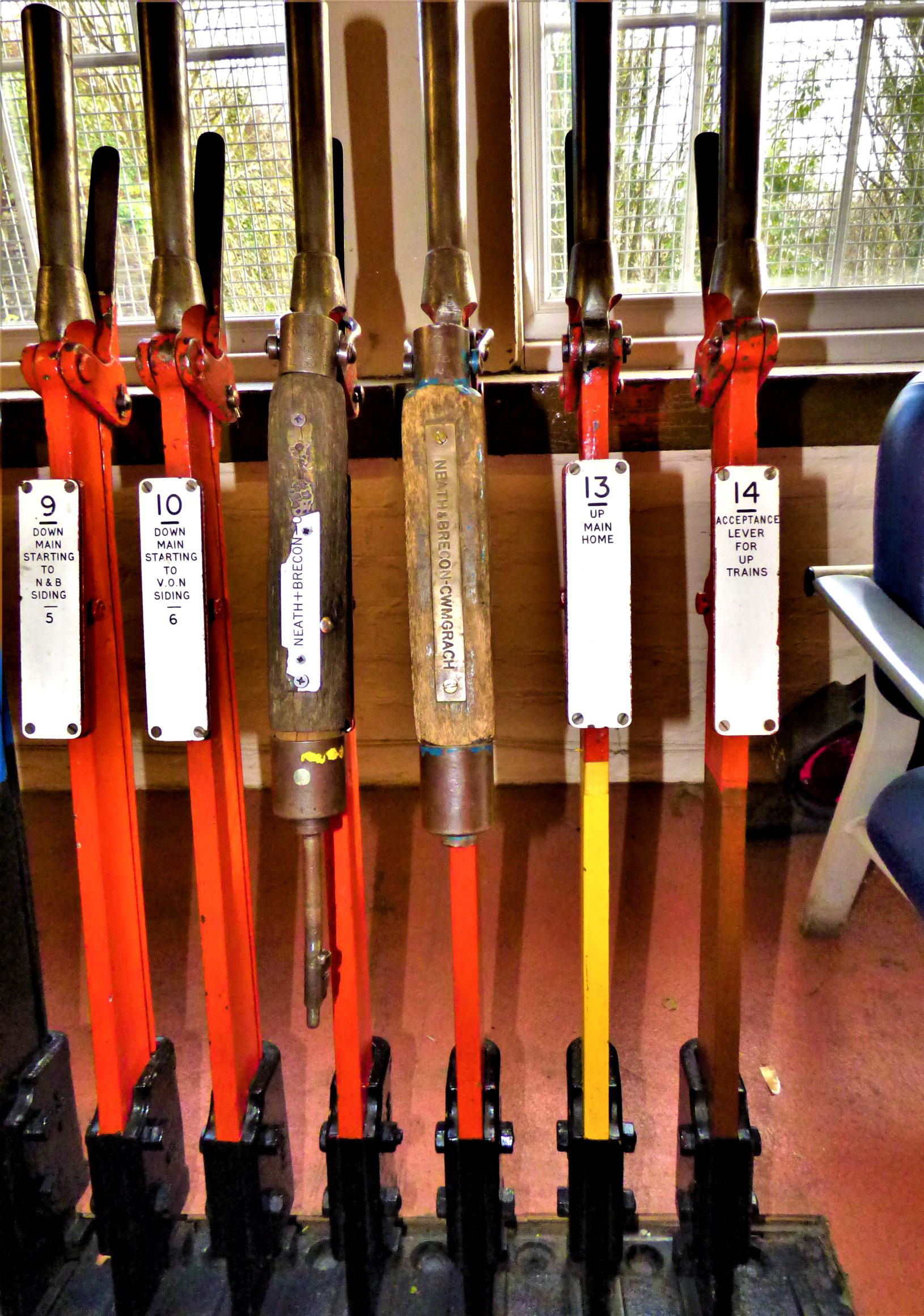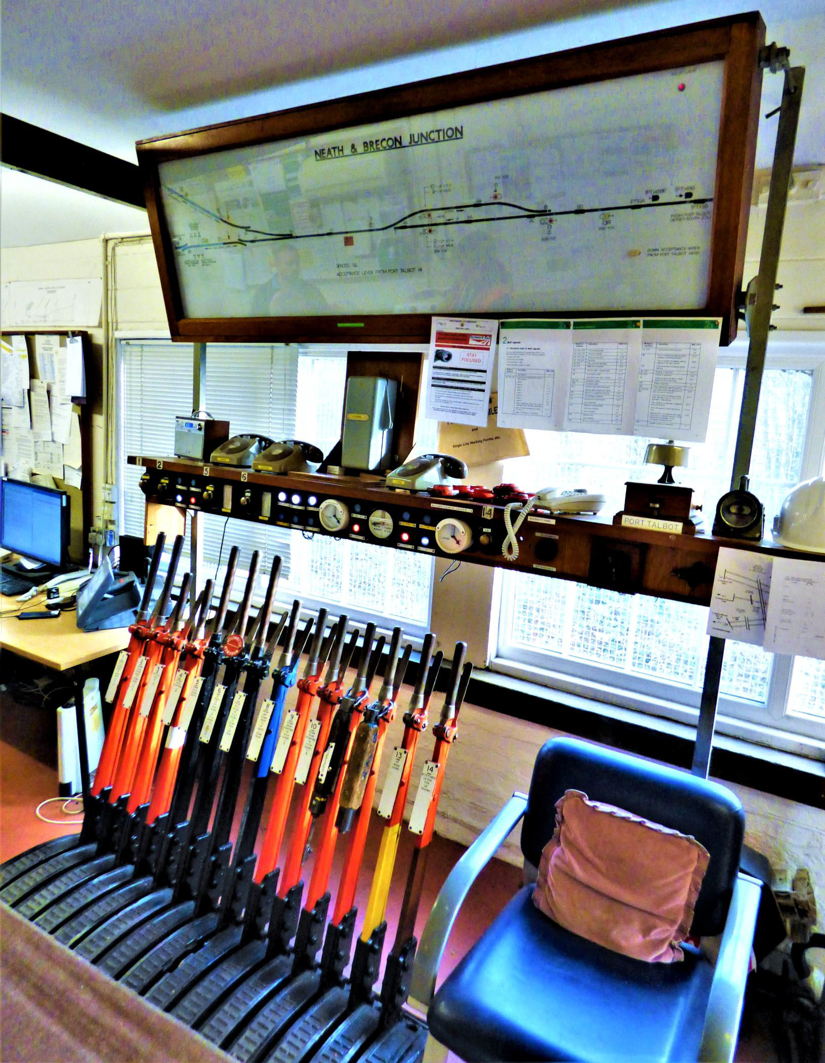 At this 'juncture' we visited the 1892 mechanical box at Neath & Brecon Junction (N&B). This Great Western Railway Type 5 box once held a 38 lever frame but there are now just 14 levers. Ironically N&B Jn is, unusually, one of the few mechanical boxes in the country to have no white (spare) levers!