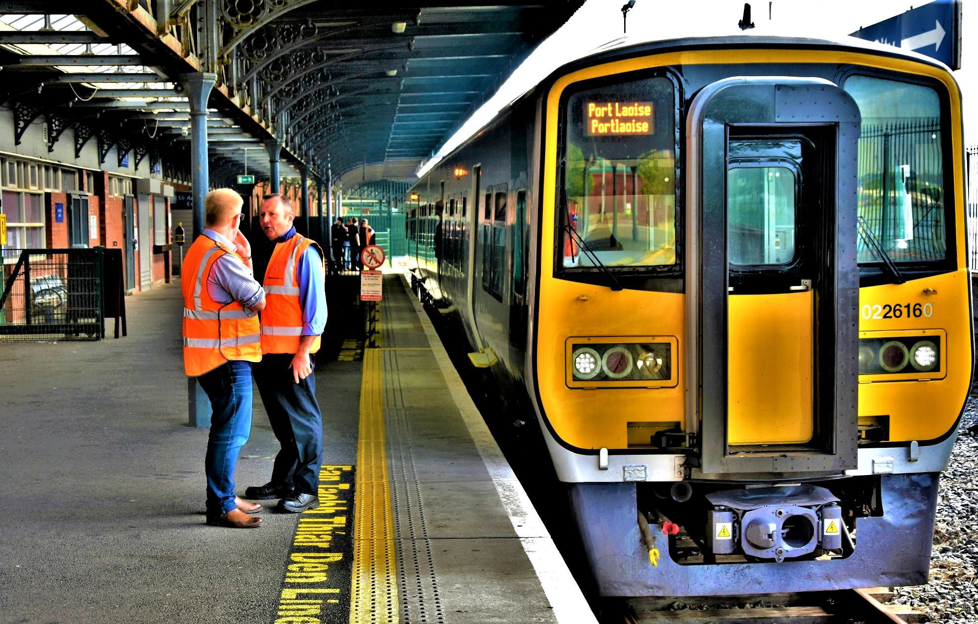 Cork Kent station at 8 O'clock on a bright sunny Sunday morning was surprisingly busy with local trains (26xx units) for Cobh and Midleton; the first express to Dublin powered by '220' and other push - pull sets with '217' and '218' stabled. Gradually familiar faces began to appear and 41 participants soon stood eagerly at the barrier for the 08.25 to Dublin to leave so that our tour train could come in.