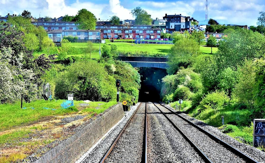 pproaching the northern portal of the 1,355yd Cork Tunnel with light at the end of the tunnel. Were there sidings on the left once?
