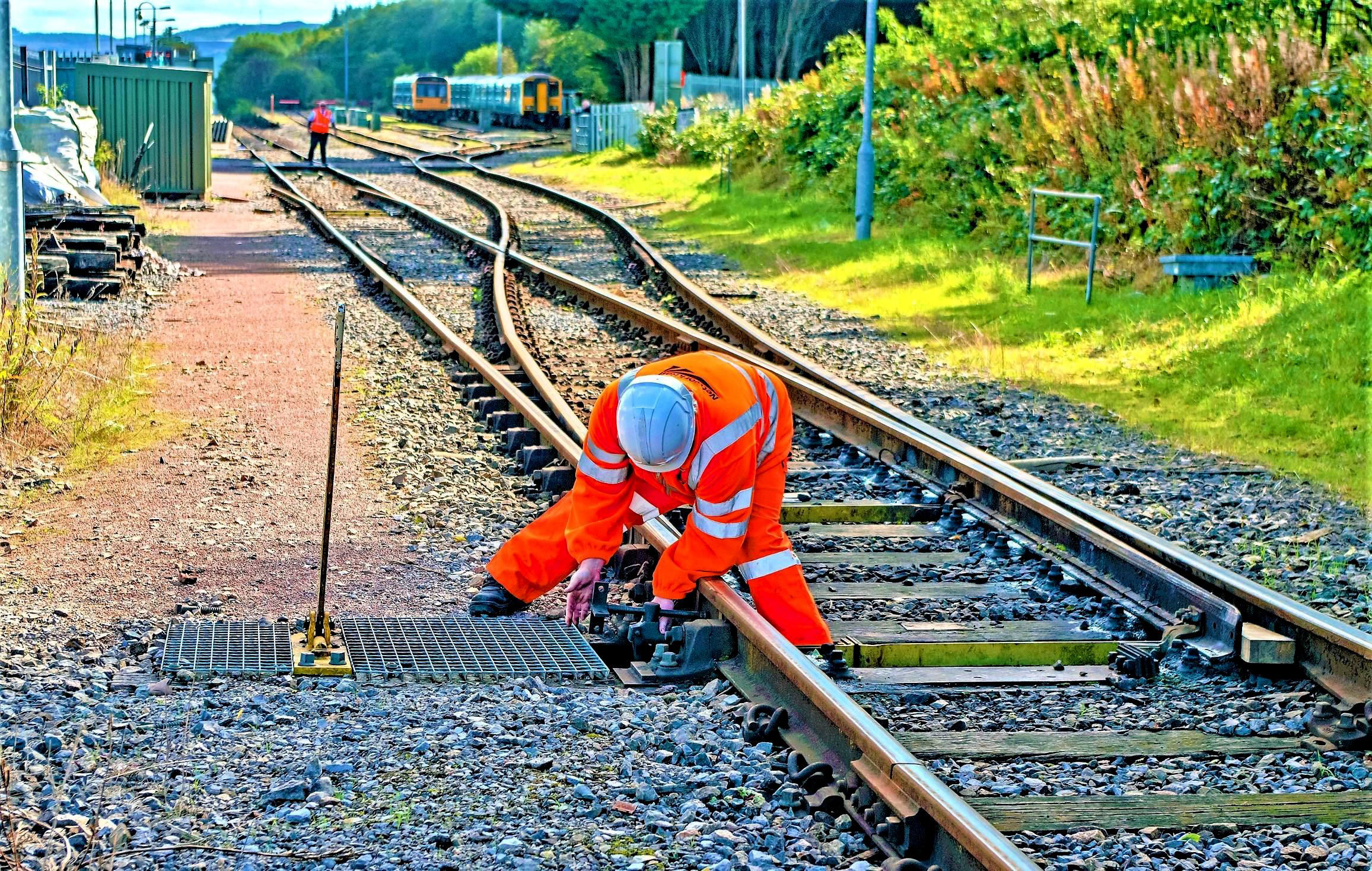 Treherbert (platform ahead left) headshunt beyond the station; the MOM secures the points to access the sidings (right) note the trap points.