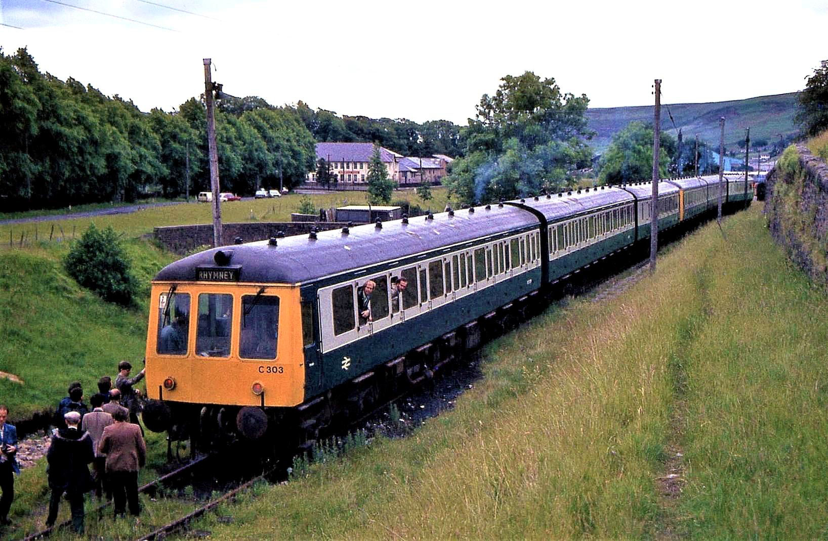 In accord with the political diktat of the time ('three cars good, two cars better') the centre trailers were withdrawn, but over the ensuing months the power cars gradually failed and were replaced by a motley of cast-off 101, 108 and 118 cars salvaged from around the country. Modernity came at last in 1992, with an influx of Class 143 Pacers; not ideal, but it seems likely that service cuts would have been the only alternative. And with growth in traffic, eventually these were supplemented with Class 142s, drafted in from late 1999. It was fitting, therefore, that our 4-car farewell tour featured one of each class: 142082 plus 143605.