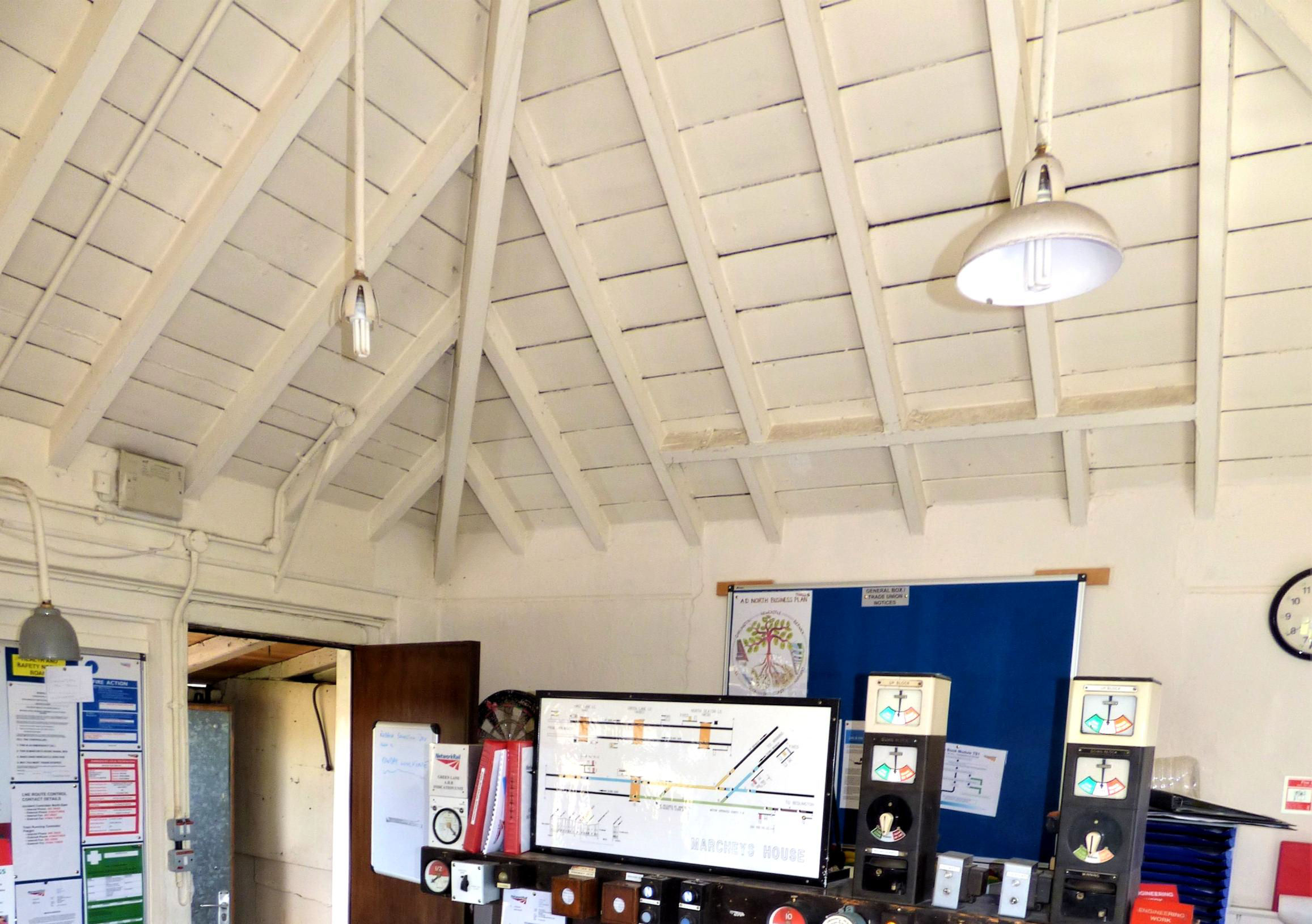 Marcheys (no apostrophe) House Signal Box: (1m 41ch from Bedlington Jn) A new signaller was being trained here by an experienced colleague, so we only had a short visit. The unusual name refers to a local farm house. [Note there is no apostrophe on the box, but it has one in the Sectional Appendix as does the junction!] The direct double track curve between here and Winning once carried regular alumina traffic from North Blyth to Lynemouth Alcan Smelter. Since the smelter closed in 2012 it is rarely used, but is maintained to operational standards and sees occasional track machines and railtours (if you needed the curve it would, of course, be a 'winning' tour).