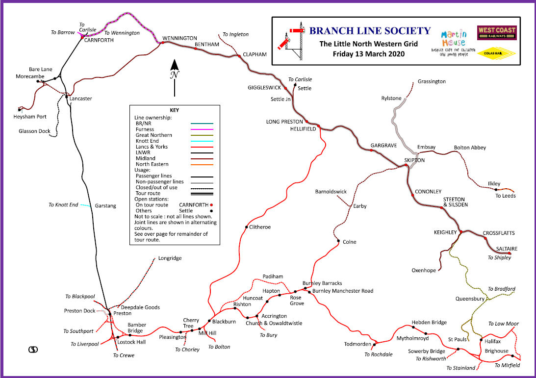 We ran along the delightfully rural and scenic Little North Western - with no idea that it would lose all its passenger services just five days later - via the 'other' Clapham to Giggleswick (no laughing matter), where we picked up a further 22 passengers. The stop had been added following requests from potential participants - so tour organisers do listen! With a pathing stop in Hellifield Up Goods Loop we would hopefully make up time but it was not to be and we left 11 mins late. A double reversal was required (at Skipton South Jn and on the Down Shipley Slow) to give access to the Rylstone branch.