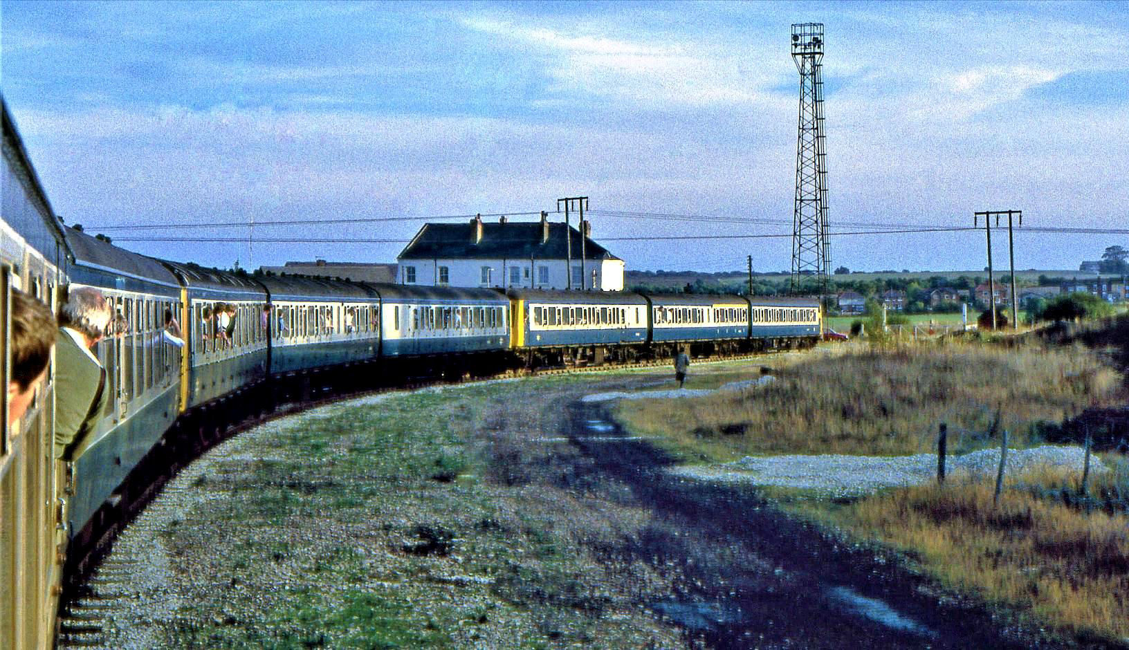 Rejoining the main line at Hagg Lane, at the eastern end of the sidings, the train reversed and returned to Milford Jn, passing through Knottingley before running into Sudforth Lane Sidings. A further reversal here allowed access to the bunker line at Kellingley Colliery, where the end of the loop line was reached by running through the loading bunker and then returning on the bunker avoiding line. Kellingley had the distinction of being the last deep mine in the UK, closing on 18 Dec 2015. Leaving the east end of Sudforth Lane Sidings it was on to a location that is familiar to current members, but which was a highlight in 1989, the branch to Drax Power Station, including a run round the loop, running through the bunker on line 'A'. This was 6m 23ch of new track for many on board this fully booked tour, of which 4½ miles was former Hull & Barnsley Railway - not much of that has survived.