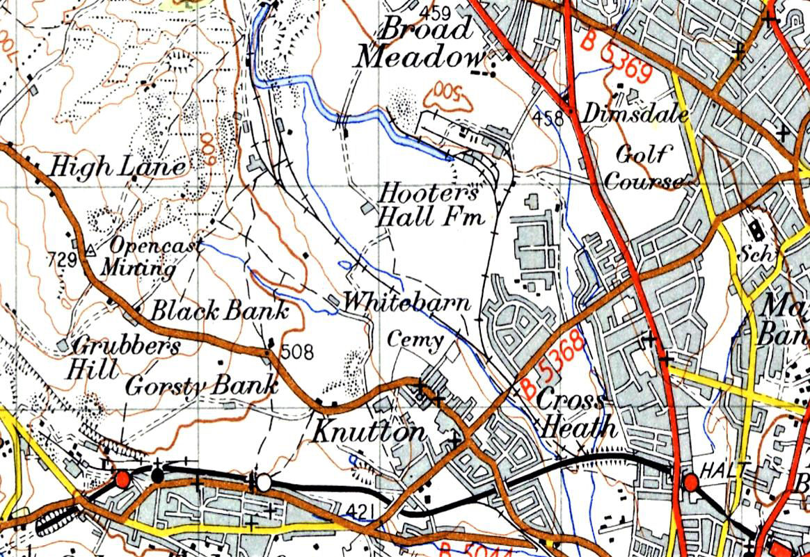 1956 - Silverdale Colliery is bottom left (Madeley Jn off left); Stoke off right. Apedale Jn is below 'Cross Heath' the Apedale Branch runs NW to where the Apedale Light Railway is - Apedale Colliery site is off map beyond. Holditch Colliery is upper right centre (branch from Knutton Gate Jn).
