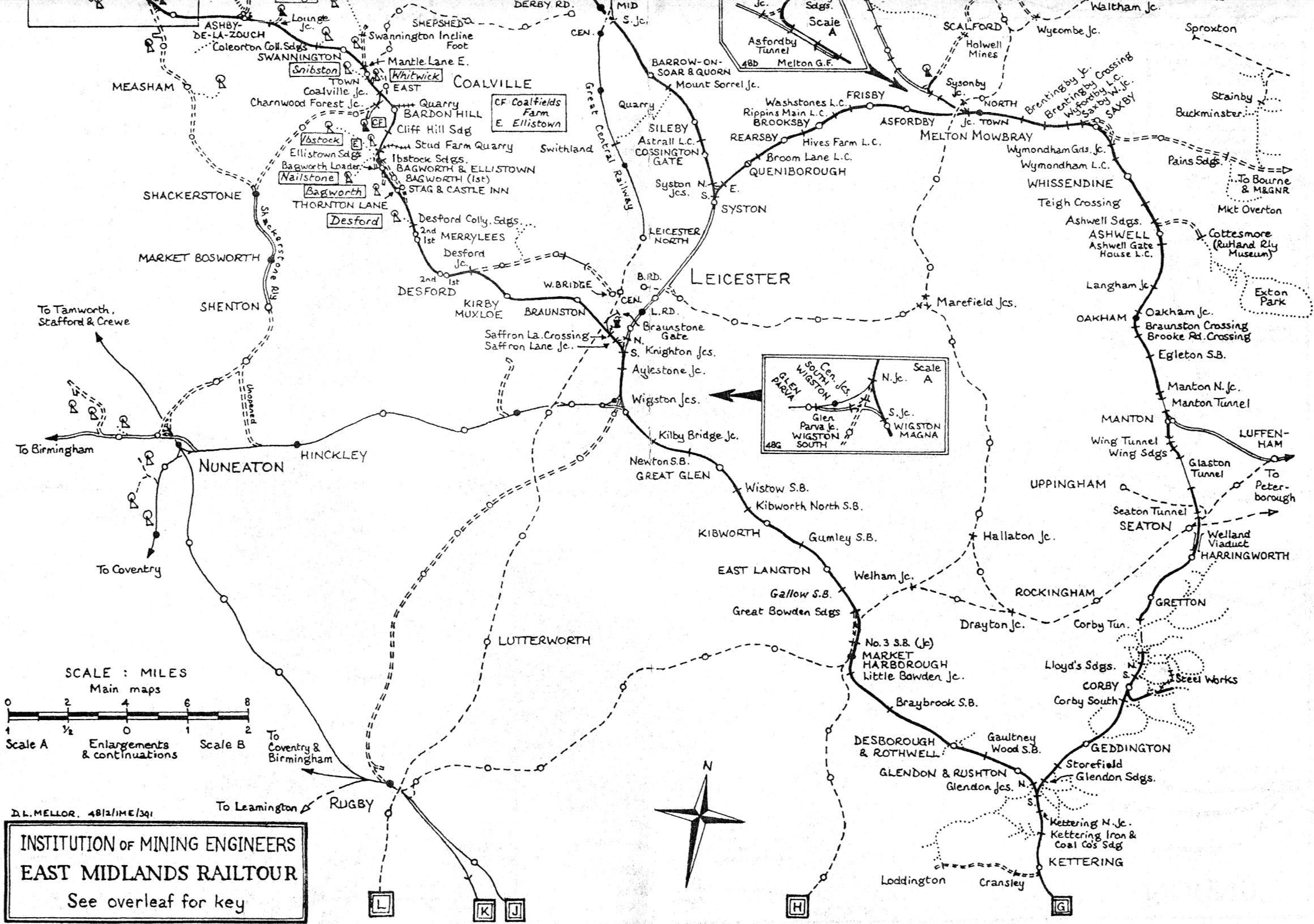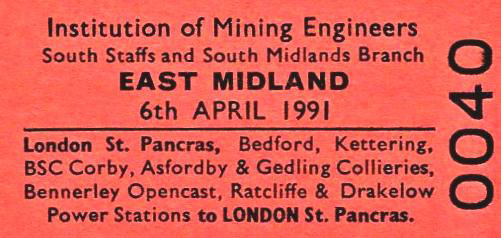 After running back to Melton Mowbray and reversing, the tour reversed again at Syston South Jn rather than using the direct curve, then proceeded past Syston North Jn and down the (then) Goods (now Slow) lines past Loughborough station. At Ratcliffe South Jn it then ran round Ratcliffe Power Station inner fly ash bunker loop (circuit). Use by fly ash trains to Fletton at Peterborough had ceased by 25 Feb 1991. However the line continued to be used by occasional inward oil trains; the oil discharge equipment was on the north side of the fly ash circuit after the ash loading bunkers.