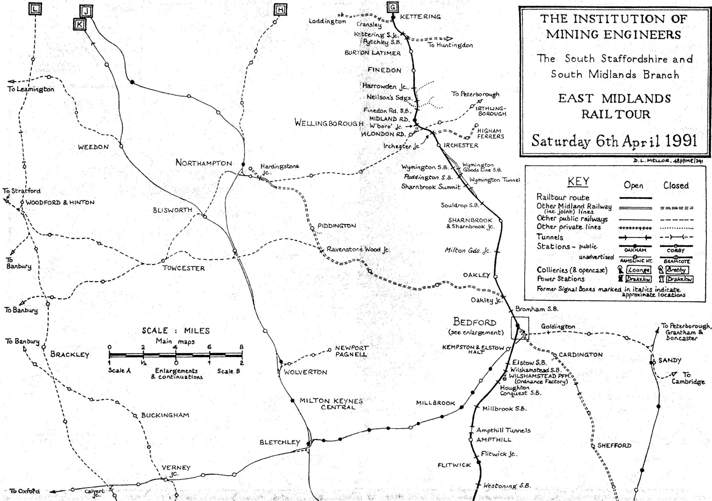 See https://bit.ly/31p5jQs The first 1991 tour marked the opening of the Asfordby Colliery branch (first coal train 12 Dec 1991) but it was much more than this. Departing St Pancras 08.10, it picked up at Bedford and Kettering before heading to Corby North Jn. Here the first reversal of the day enabled the train to proceed to the British Steel Corporation (BSC) Corby Tube Works, where the end of line was reached.