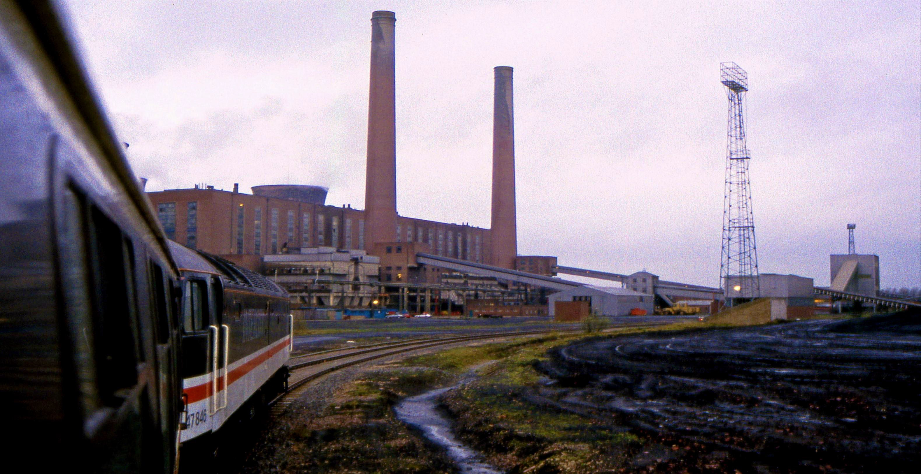 From the rear of the railtour leaving Bennerley Coal Bunker, which was relatively modern at the time; the famous Bennerley wrought iron viaduct is in the background.