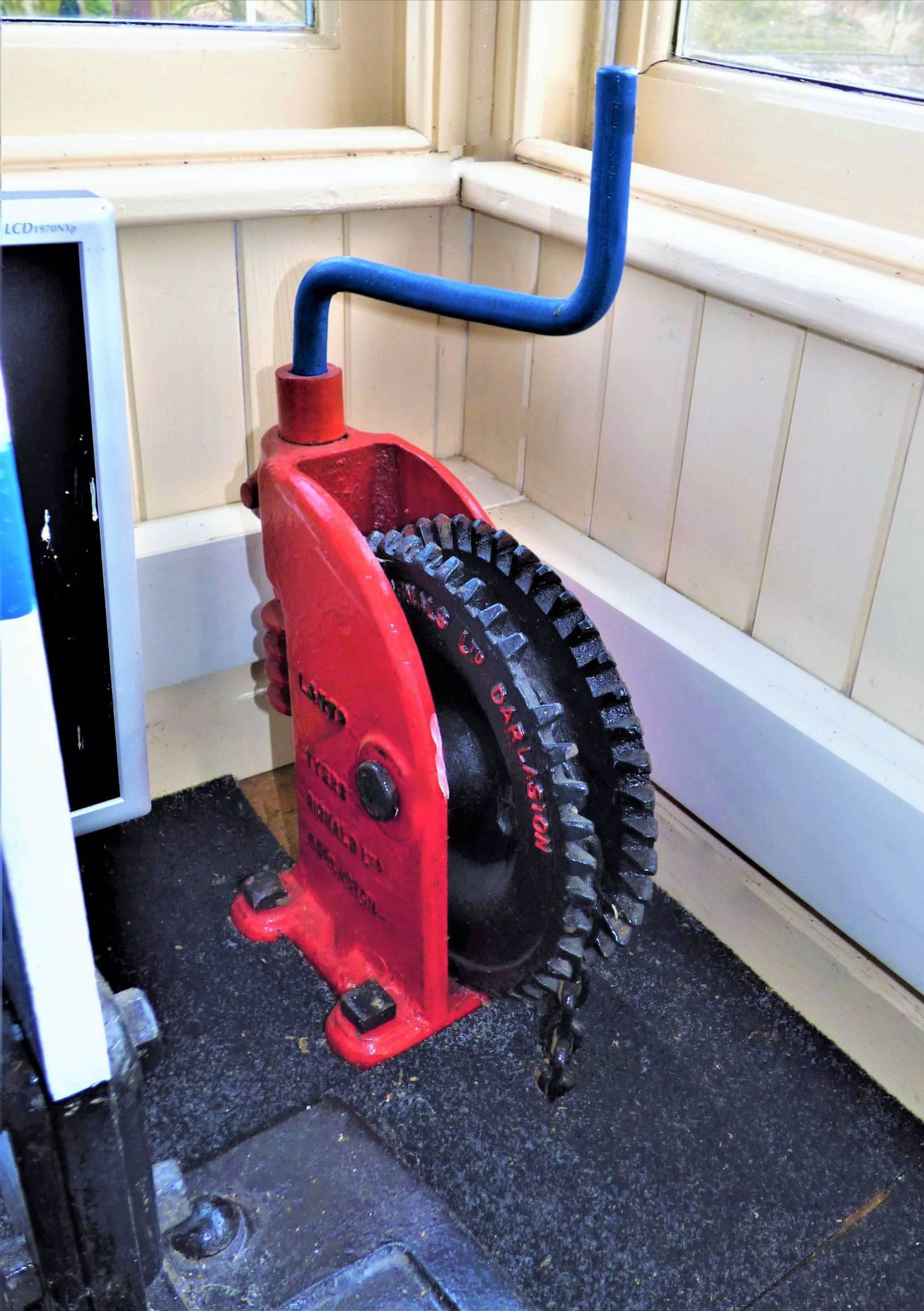 It's a wind up ... not some sort of mediaeval torture but tensioning equipment in the ex-NER signal box for long signal wires so that they could be adjusted for temperature changes.