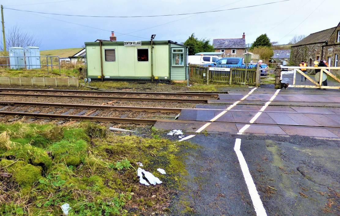 For reasons that are not clear, just two of the crossings - Denton Village and Lane Head - have not been modernised and in 2020 are still protected by hand-worked gates opened and closed by crossing keepers operating from adjacent gate boxes. Both are on very minor roads; one is little more than a cart track but its crossing is at a bend on the railway, while the other is on a straight section of line but with houses close by. The two crossings are east of the 2009 commissioned signal box at Low Row.