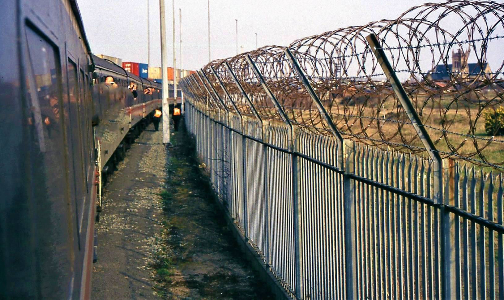 the only tour to go past the gate. It about to pass under the gantry crane ahead.