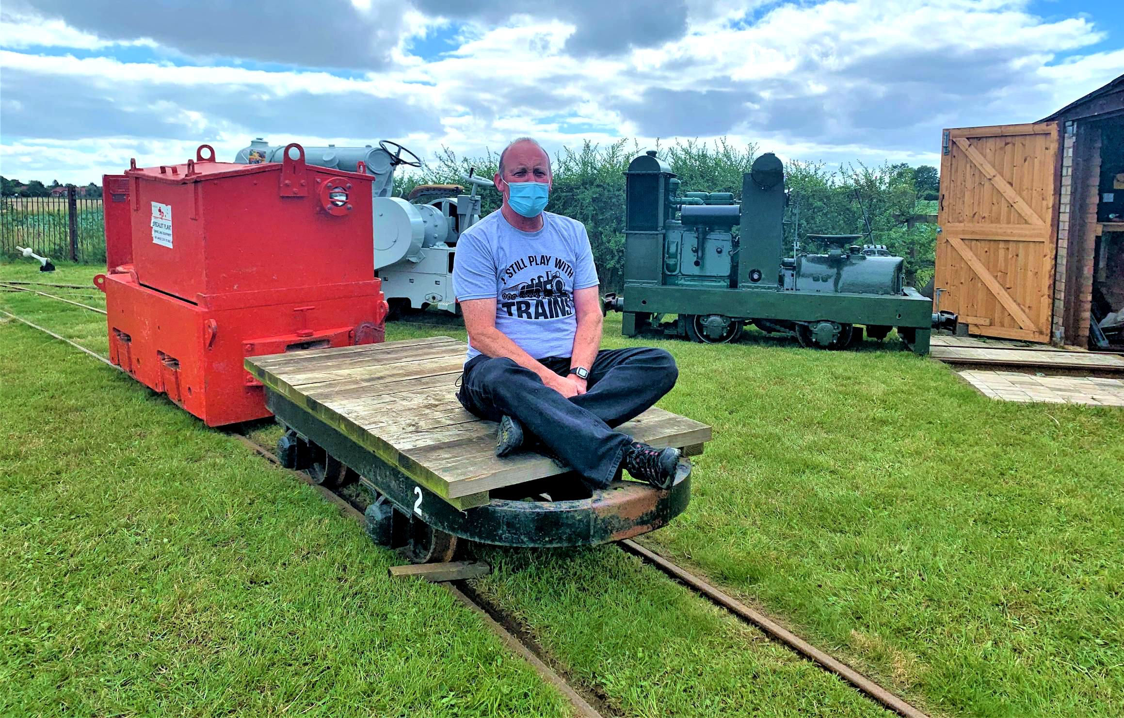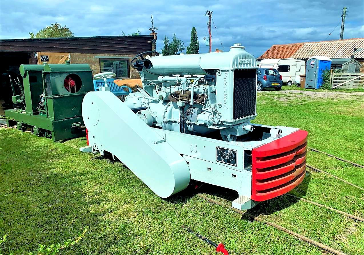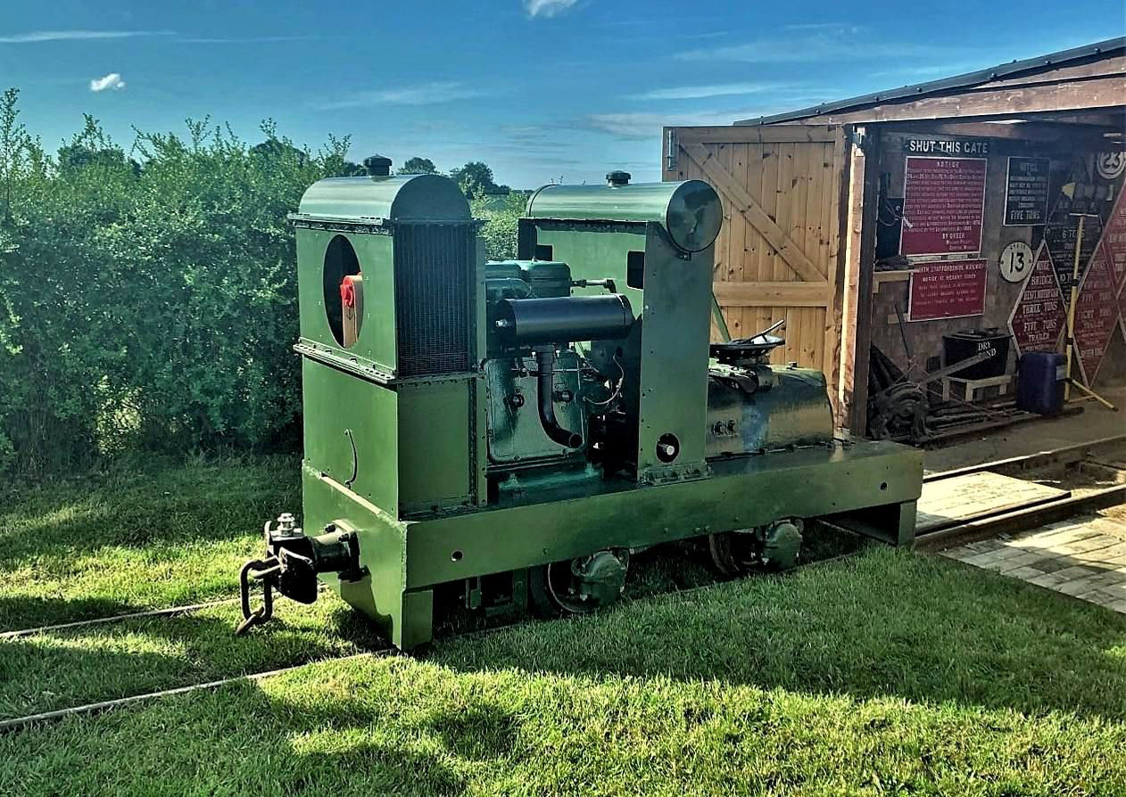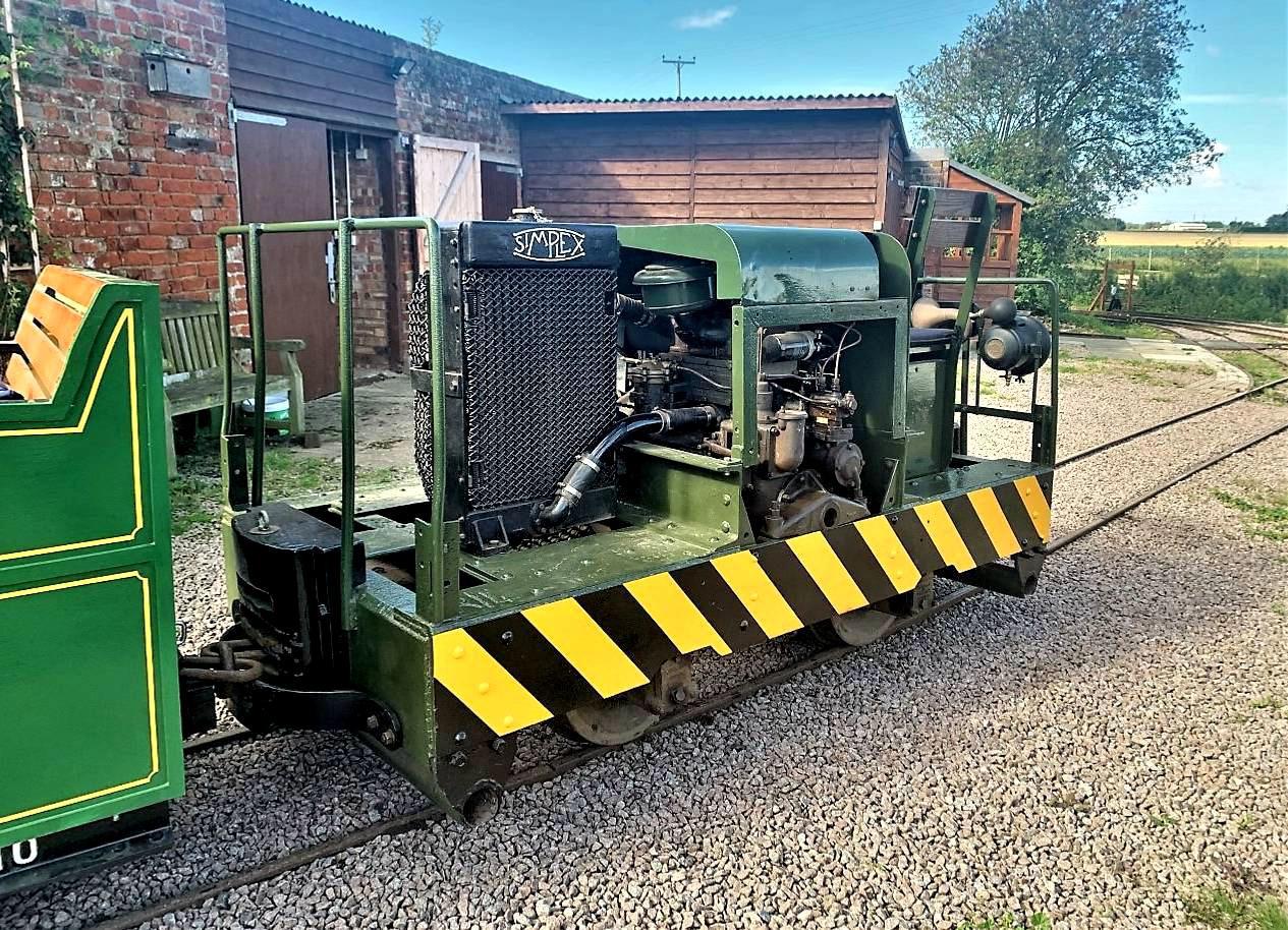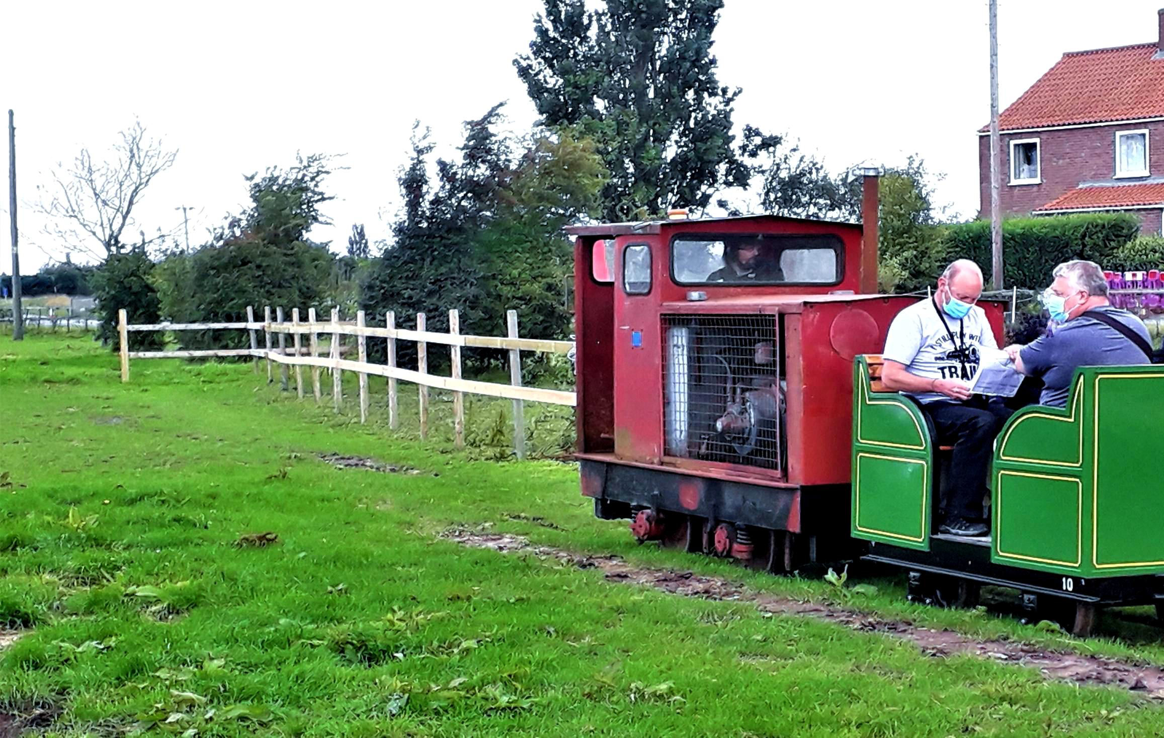 For the first Society fixture in five months, 12 participants assembled for a prompt 10am start at this fairly new private 2ft gauge line. Situated in the village of Old Leake, it is just northeast of Boston in rural Lincolnshire. Tea, coffee and lovely homemade cakes were available before we set out, in three groups of four, everyone with their face coverings, to ride the length of the 'normal' running line. This is from the main front yard of the owner's house out into the adjacent field. Power was provided by green liveried Simplex 'Jane'.