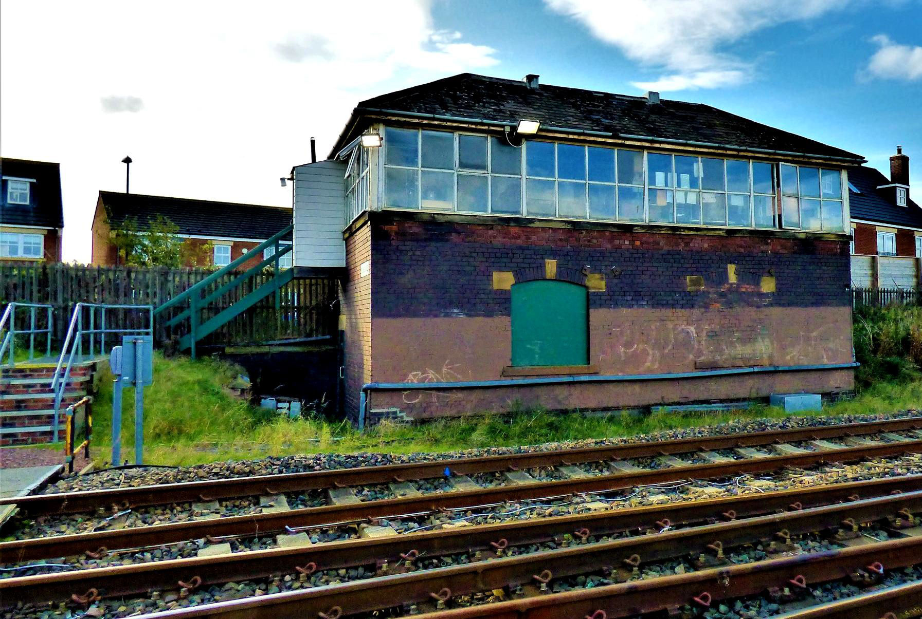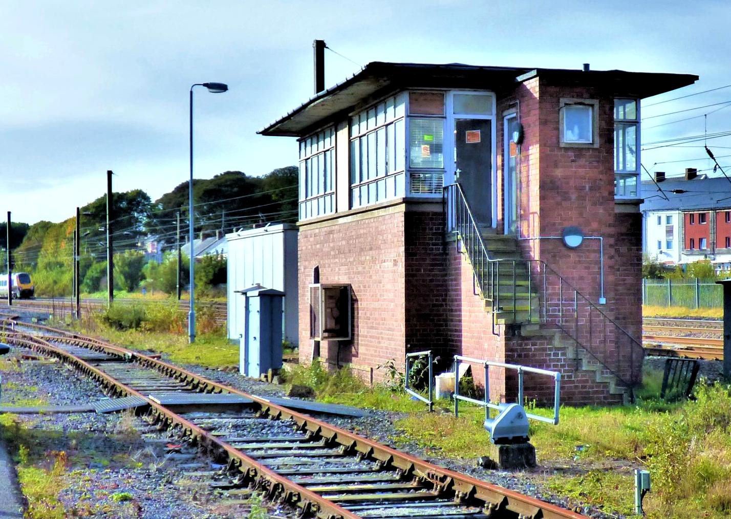 This was the most modern of the boxes visited this day, although a London & North Eastern Railway Type 13 design, it was built as late as 1952, but has seen many changes since. The box is at the south end of the former Ferryhill station (CP 6 Mar 1967 but recently awarded funding towards feasibilty studies into reopening which Boris Johnson said he was keen to see!). It originally had a lever frame but in recent years there was just a small Individual Function Switch (IFS) Panel dating from 1992. This only controlled acess to/from the Stillington branch to Norton-on-Tees West, with Absolute Block controls built into the panel. It also interfaces with Tyneside Integrated Electronic Control Centre.