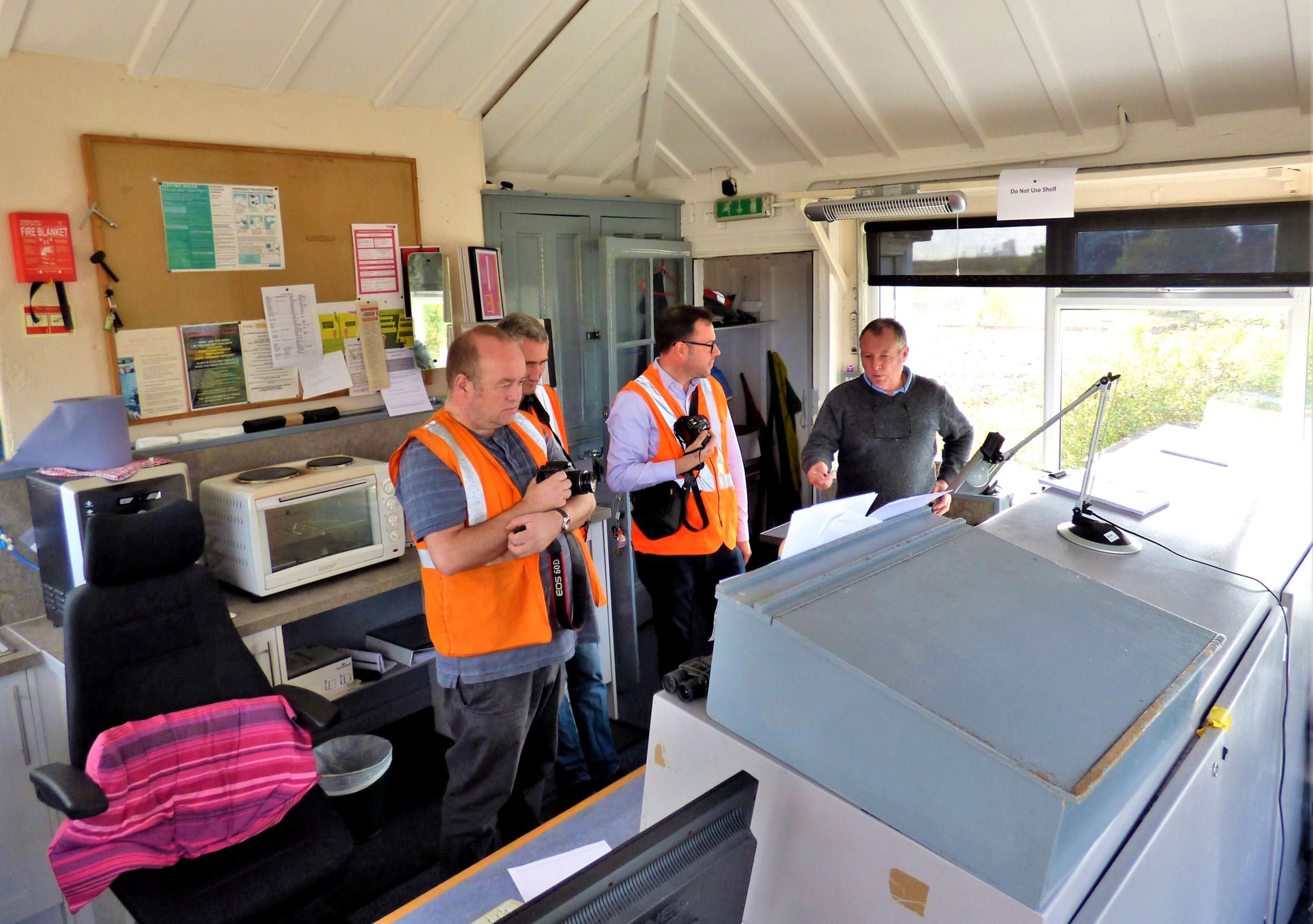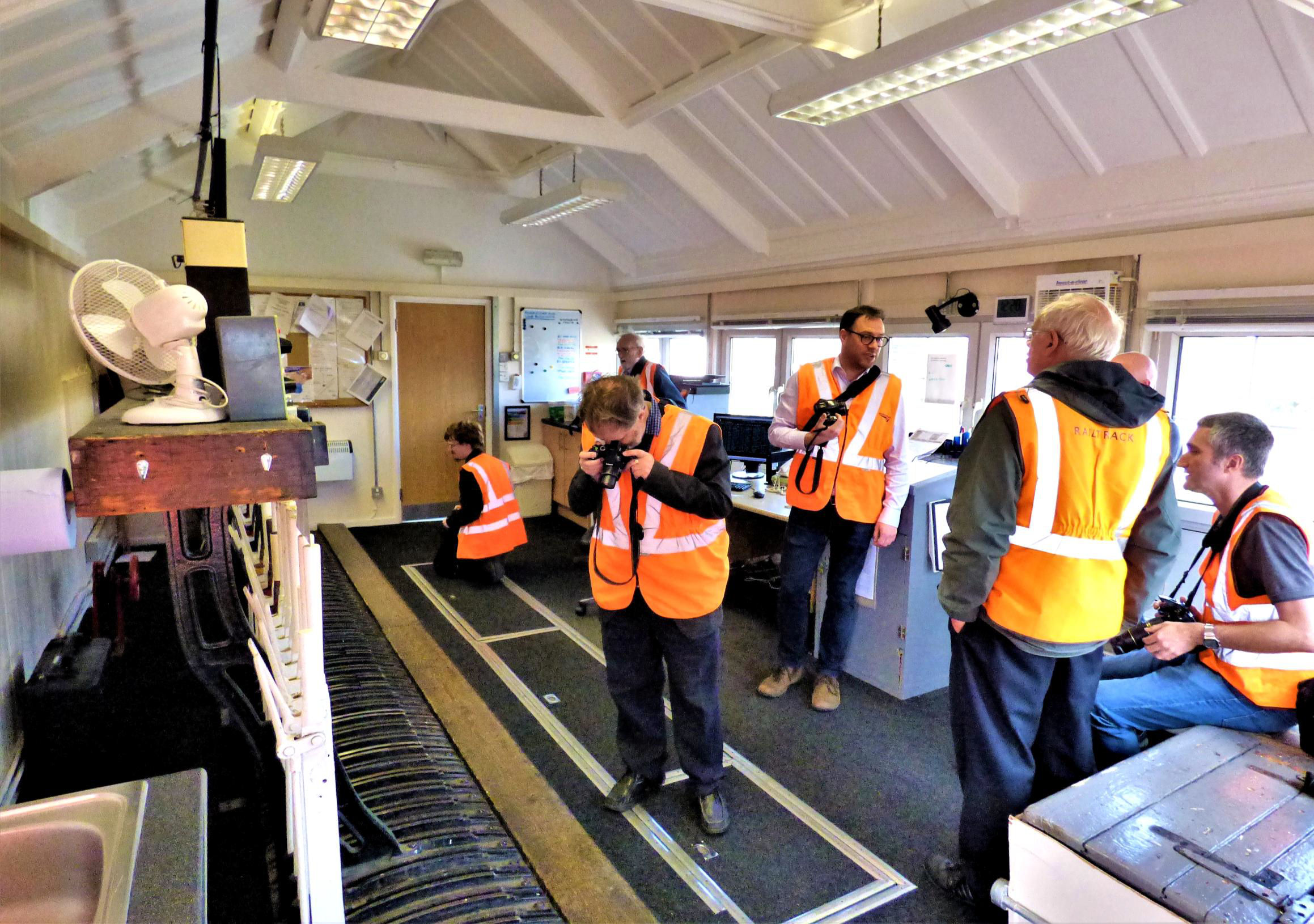 Some of the group inside Greatham Signal Box.