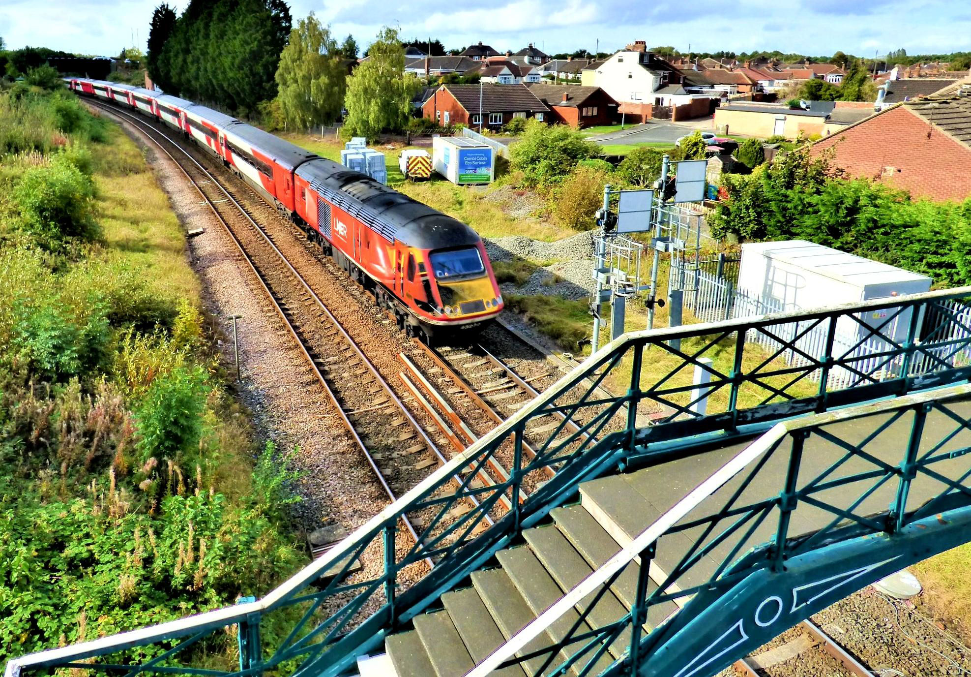 What was believed locally to have been the first LNER Azuma on the Durham Coast line (10.00 Edinburgh Waverley to King's Cross) passing Billingham Signal Box.
