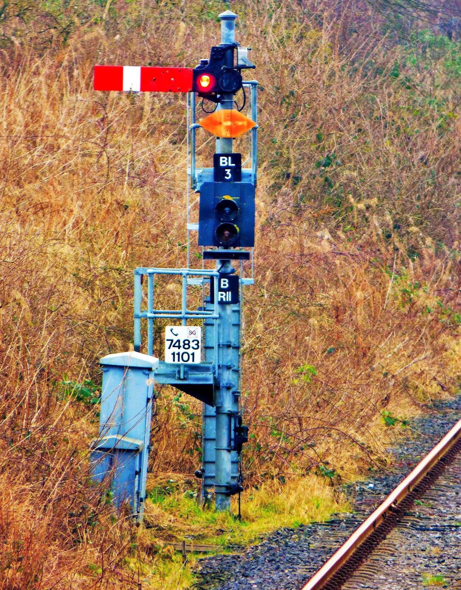 Billingham is also the junction for the truncated freight branch once to Seal Sands, still double track to Belasis Lane. This was worked by Absolute Block to Belasis Lane box but by the time of our visit regular traffic (biofuel to Cardiff) had ceased six months earlier, so Belasis Lane box was rarely manned. In what was quite an unusual arrangement, Billingham (colour light) Up Distant '11R' from Belasis Lane was mounted on the same post as Belasis Lane (semaphore) Up Starter 'BL3'. Billingham box closed permanently at 01.35 on 6 Feb 2021 and was demolished during Sun 7 Feb (pictures e-BLN 1370.360).
