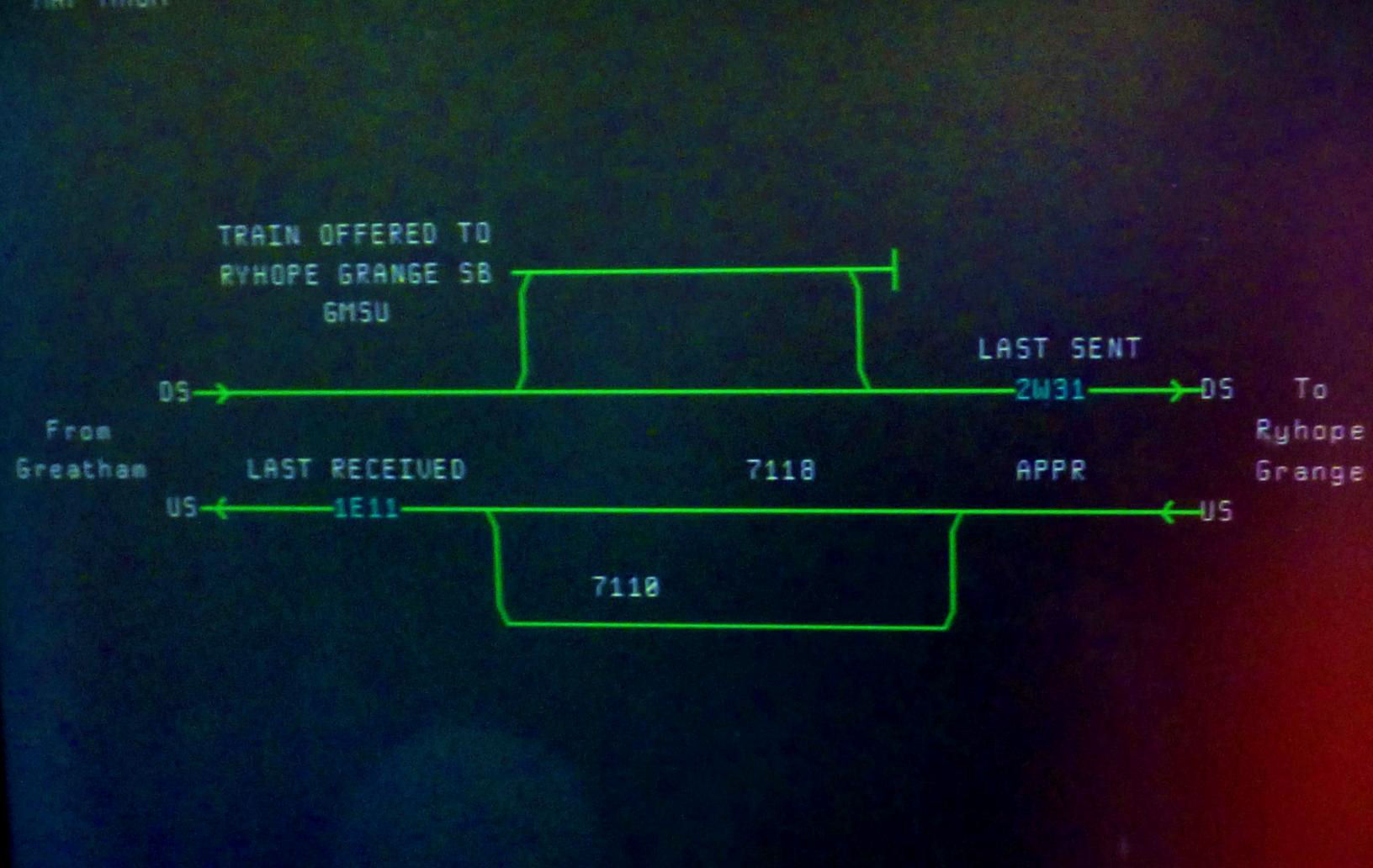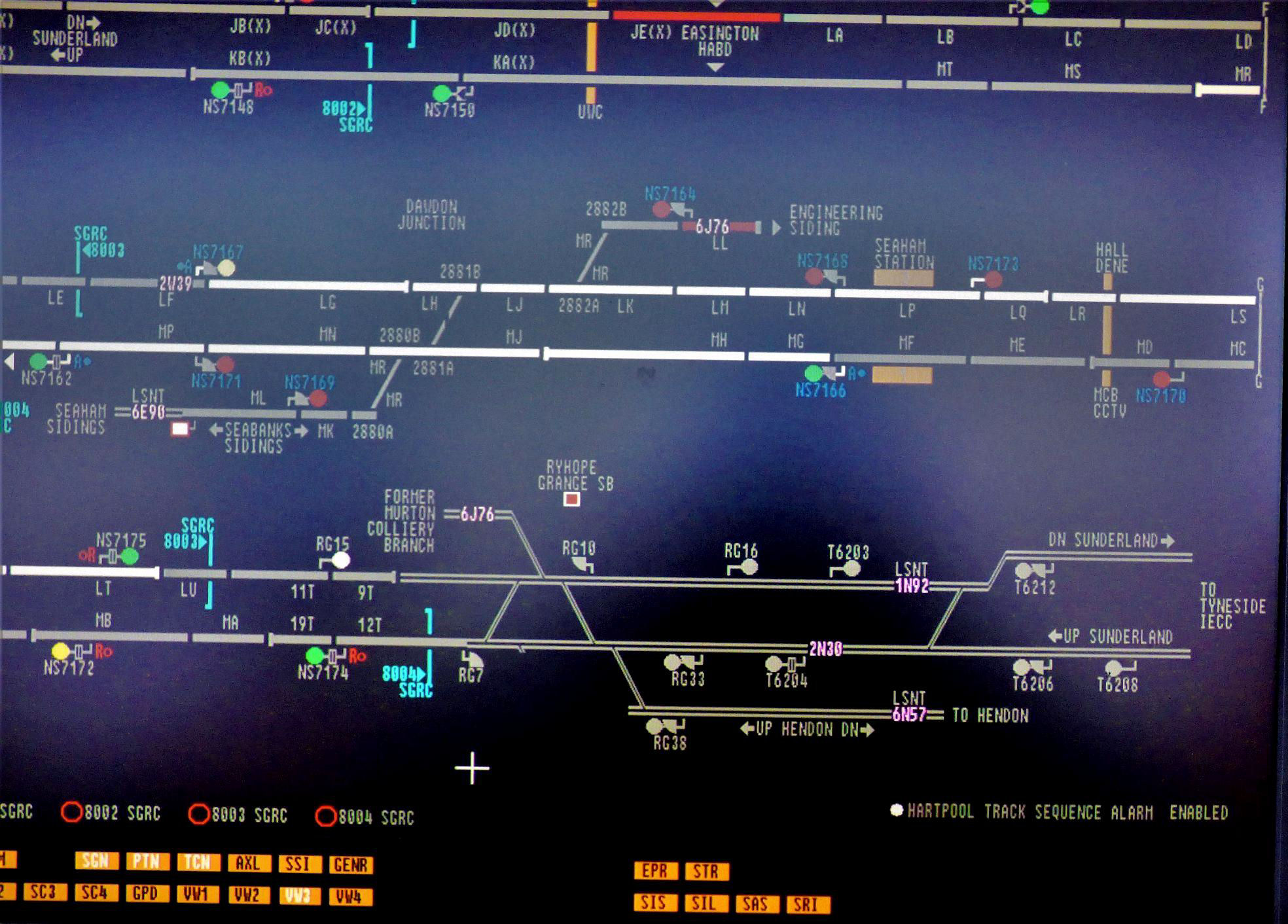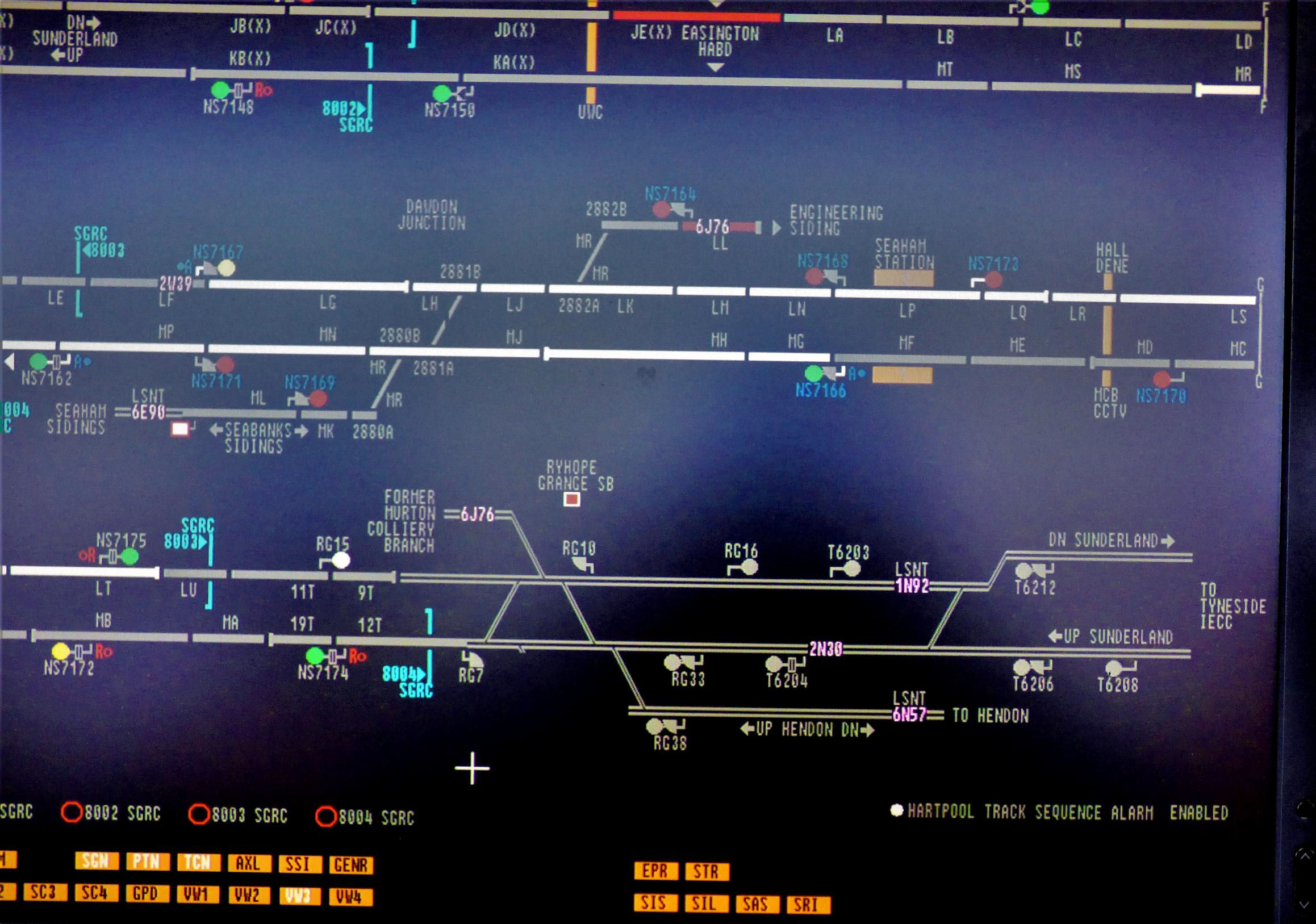 Ryhope Grange Signal Box WestCAD VDU workstation covering the Easington to Ryhope Grange area.