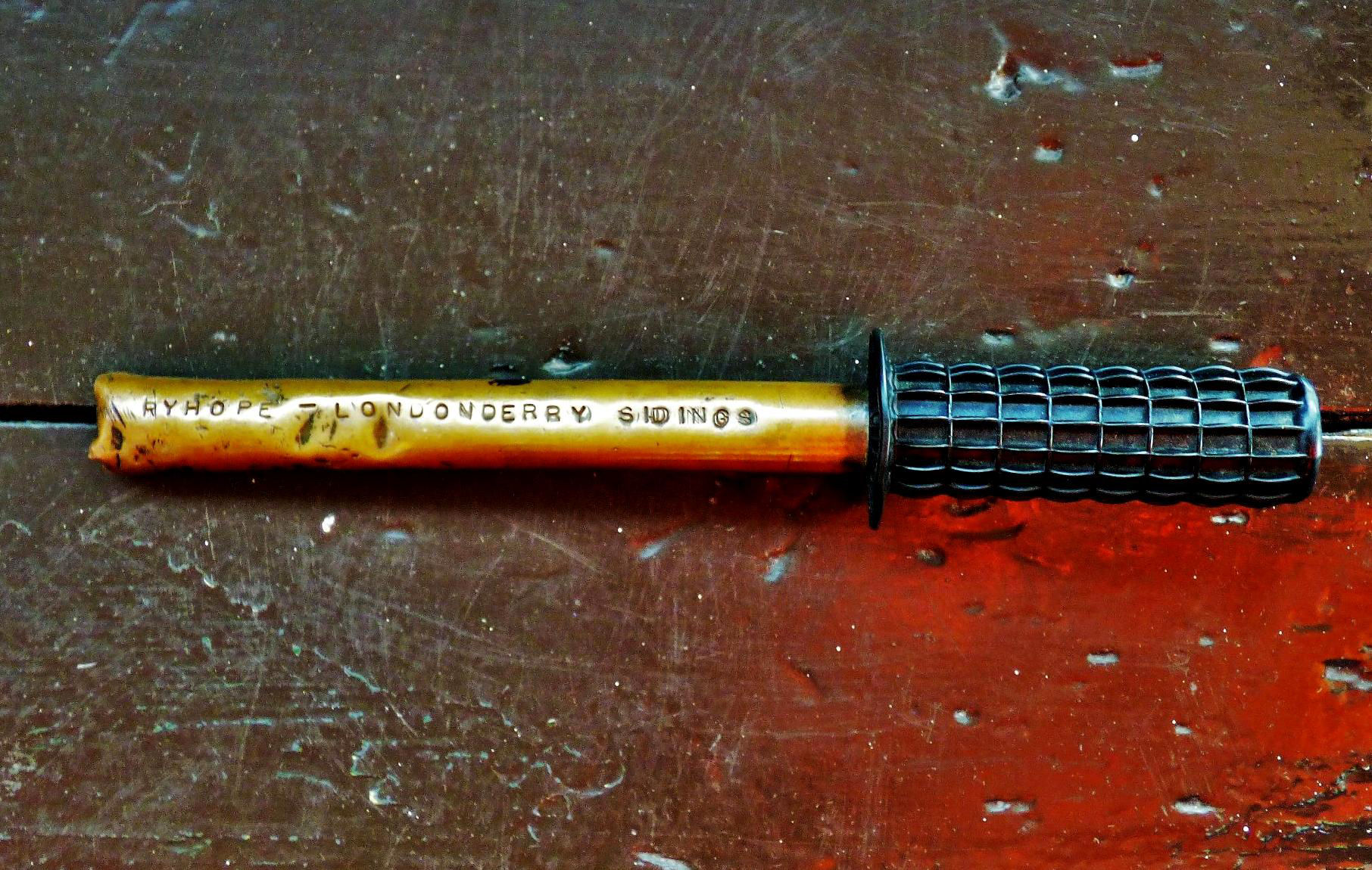 When we arrived, the first part of the Hendon Branch (to Londonderry Sidings) was under possession. This was then given up, allowing us a good look at the train staff - a piece of copper pipe with a bicycle handle attached (recycled?)! More very low-tech (but still highly safe and effective) equipment was a wooden road occupation board with slides to indicate which sidings were occupied. Many thanks to Local Operations Manager Katrina Lawson and her signalling staff for a very interesting and enjoyable day; £245 from participants was donated to Cancer Research UK.