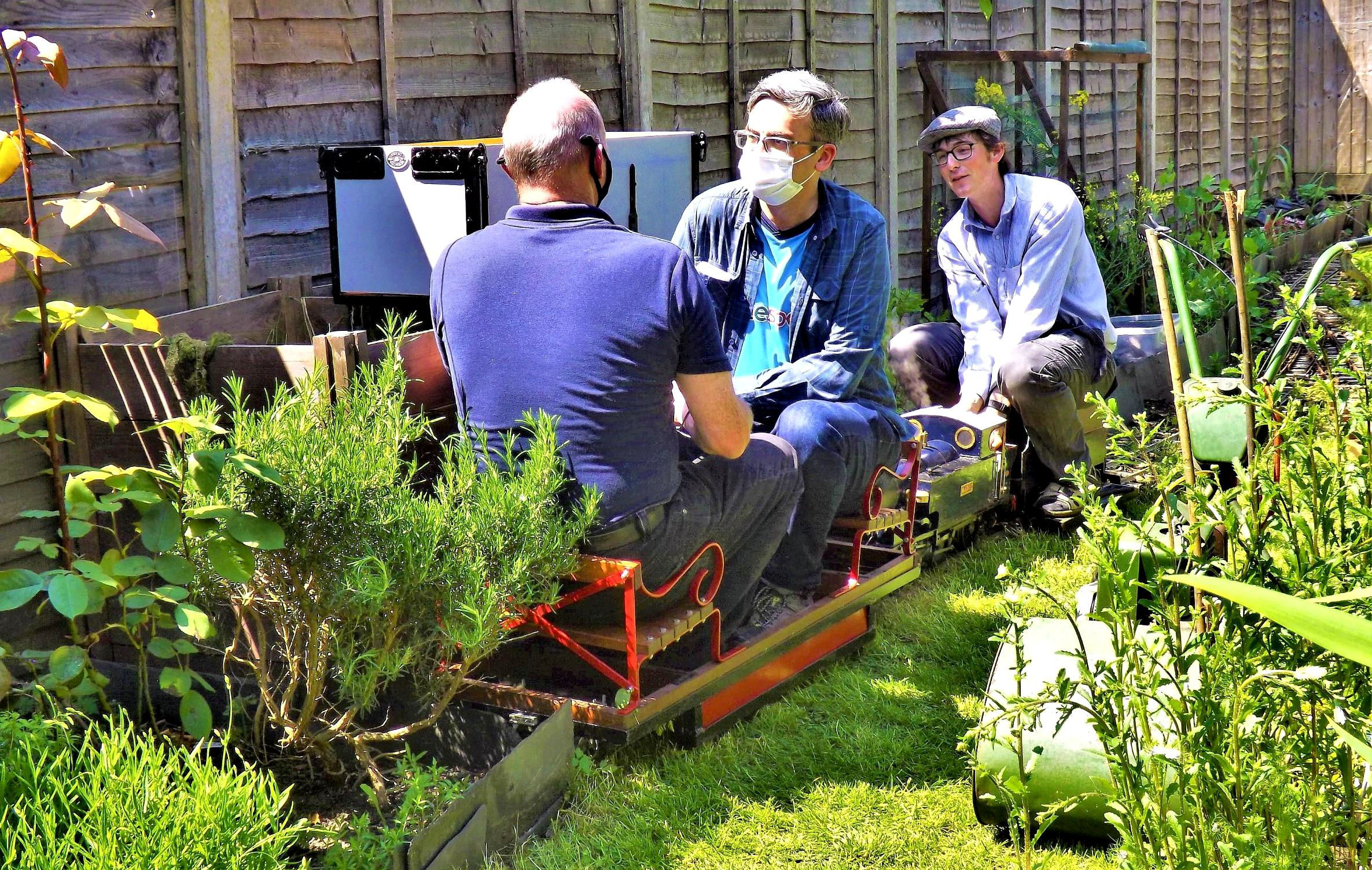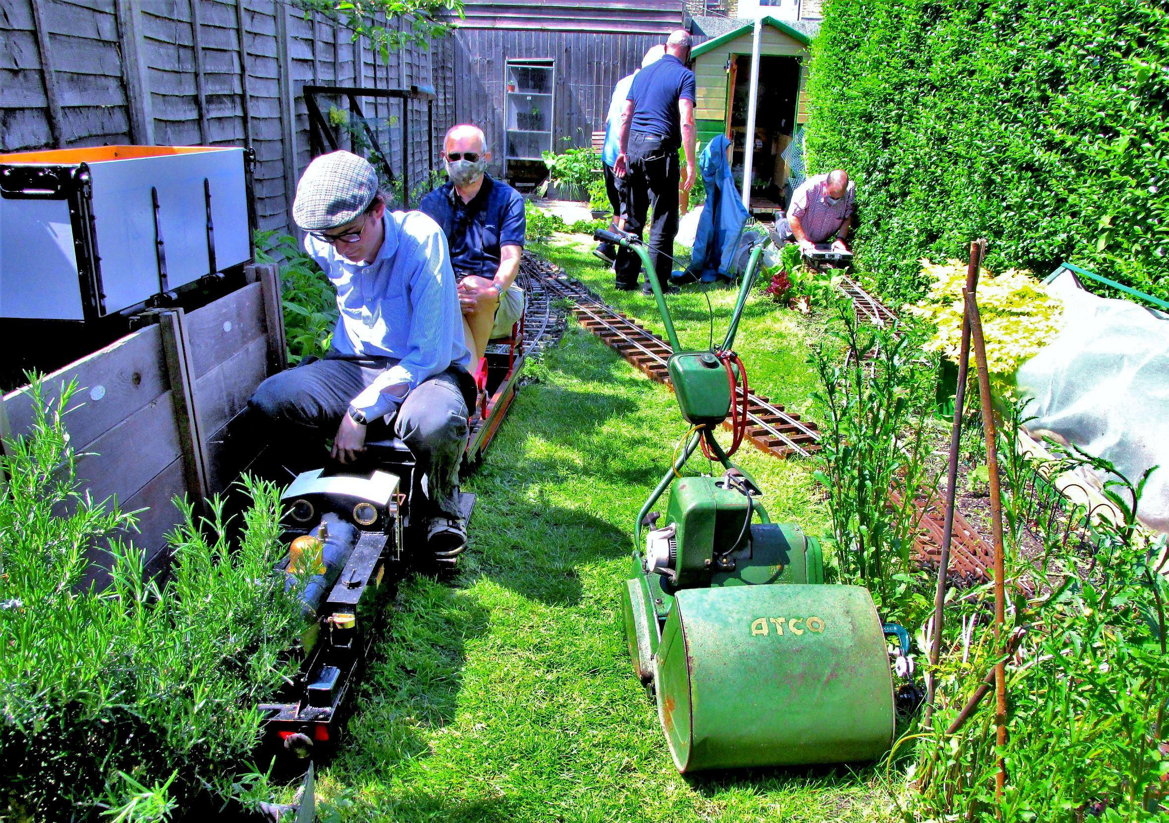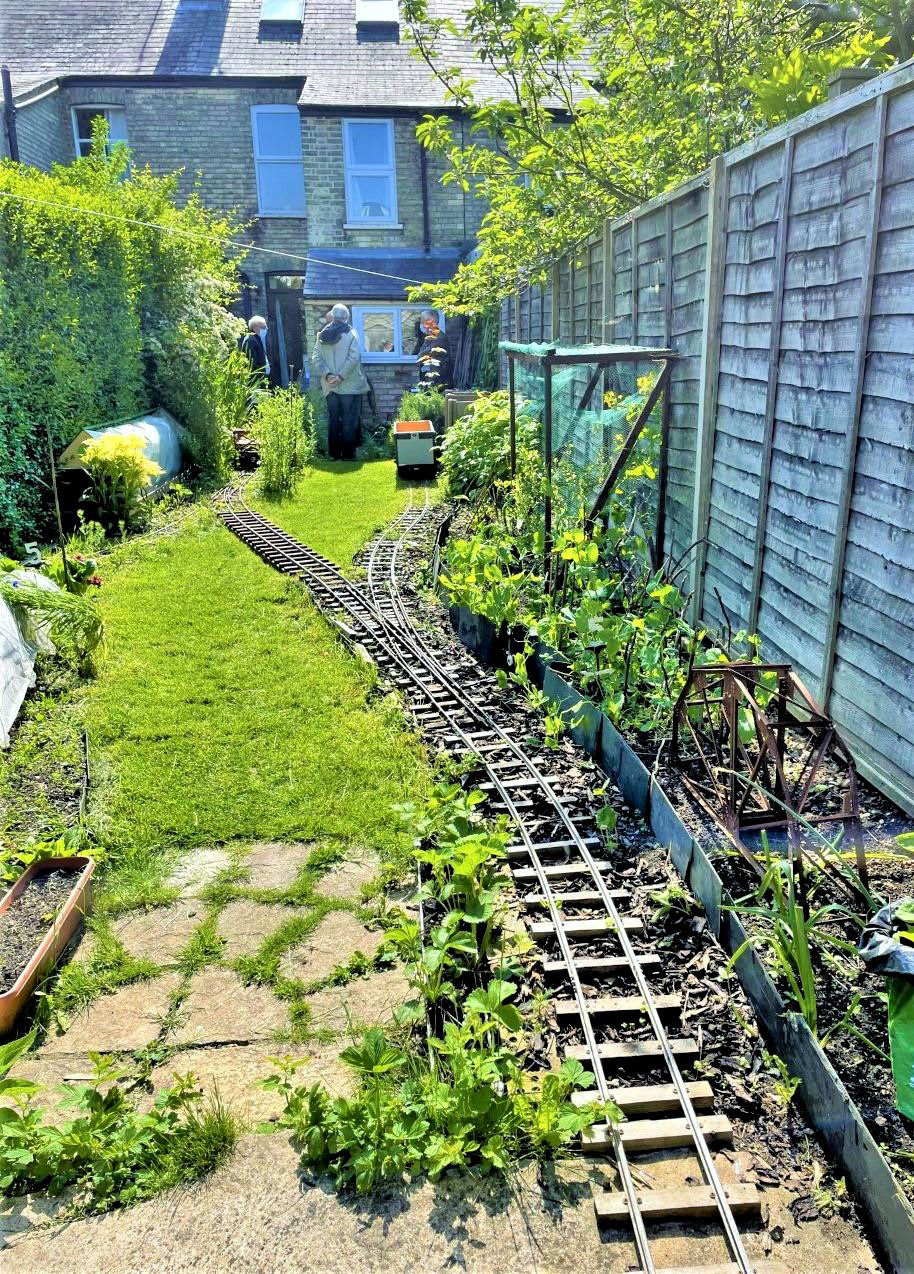 And that was why small groups of miniature people started to descend on a normal suburban terrace in Cambridge on the last day of May 2021. Group size was limited by the 'Rule of Six', to five, plus the one owner/driver/platelayer/etc. Actually, even without Covid rules we wouldn't have wanted many more in a group, there was quite a lot of track in a perfectly normal size garden and we had to be careful not to squash the salad crop as we walked around here. The train could accommodate two passengers on the main runs and just one on the really 'rare' track.