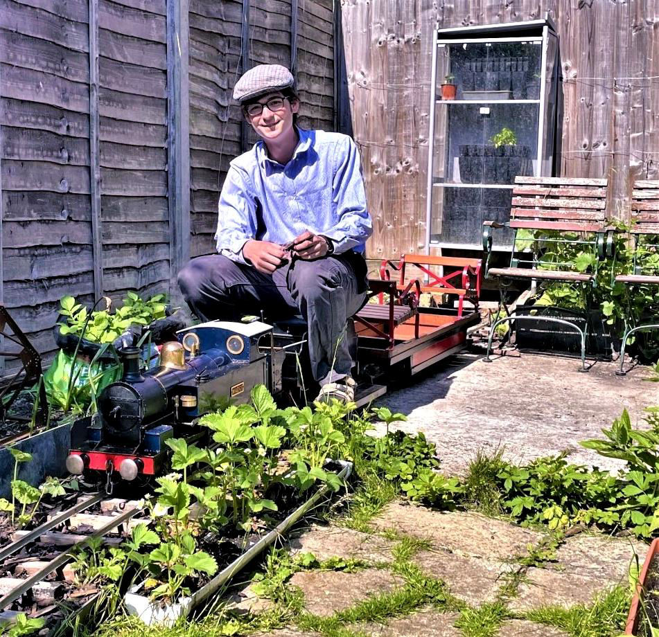 Romsey Horticultural Tramway, Zach; with 'Madge' at Potting Bench.