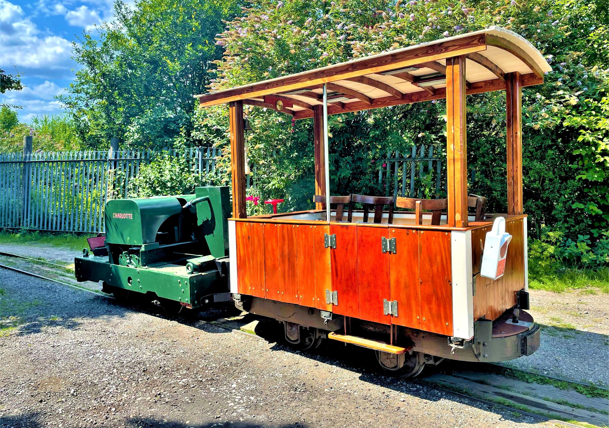 It remains in almost daily use to move boat components up and down the 1:13 incline between the canal and the narrow road access. An eclectic mix of mainly diesel mechanical locos is on site, most in working order, along with many miscellaneous wagons. The hourly Sunday service had caused us to arrive over half an hour early; as we waited for our numbers to reach 20 while those not arriving by rail slowly turned up, a convoy of four locomotives showed up along with a wagon carrying an armchair, with a staff member ensconced. One loco, 'Charlotte', caused much consternation as it did not seem to match the description of any in the stock list. It was MR8905 which had arrived just the previous day!