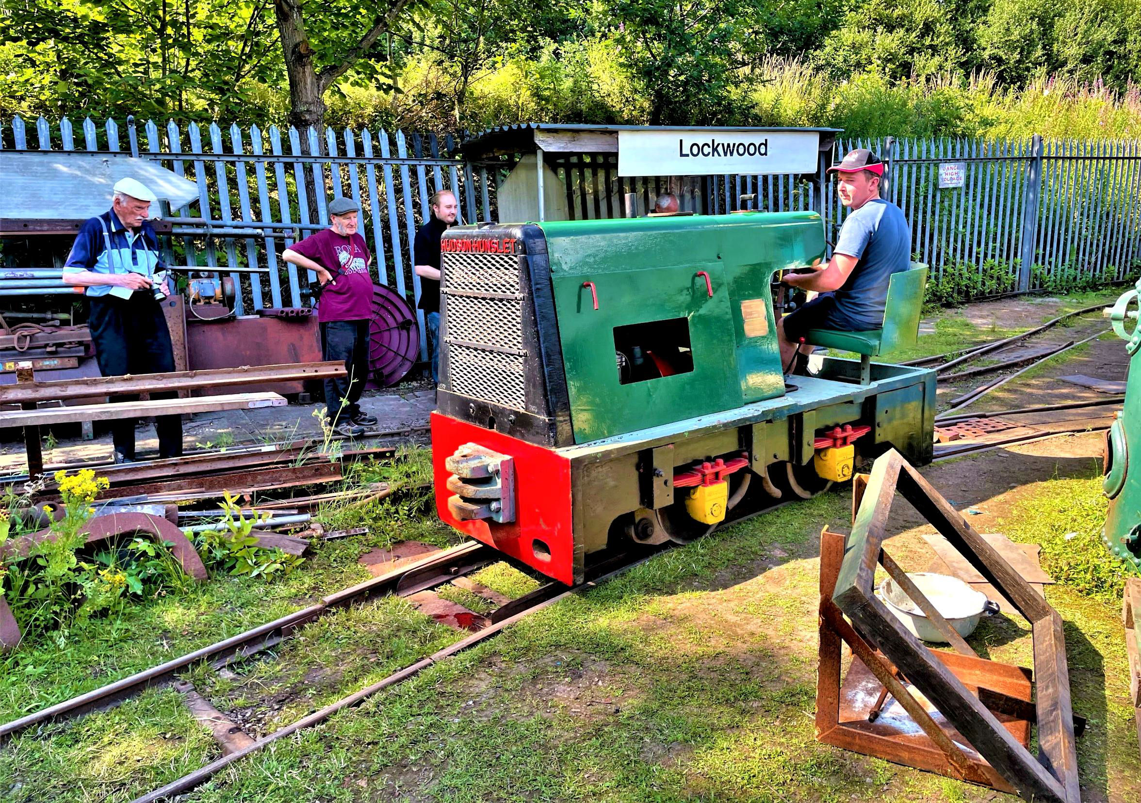 Tea, coffee, juice, cakes and biscuits were available, generously provided by the folks on site, for which we were very grateful. Naturally there wasn't much of a break for those running the event, as they now cleared the bottom end of the line for us. Surprisingly, all the wagons could be shunted towards the top end clearing the northern loop. Then, from the aforementioned Lockwood station, 'Charlotte' hauled a train around the large shed area to the end of line (overlapping with earlier) and back.