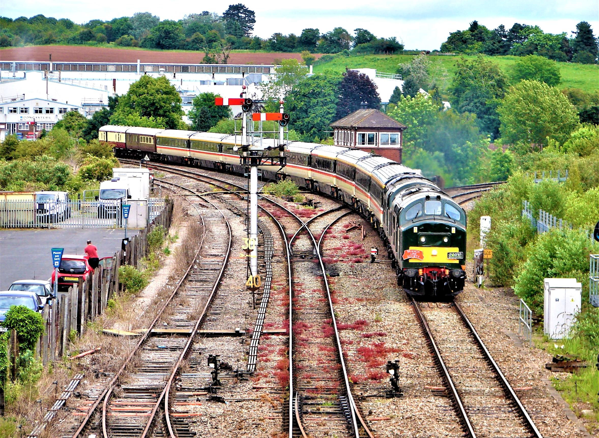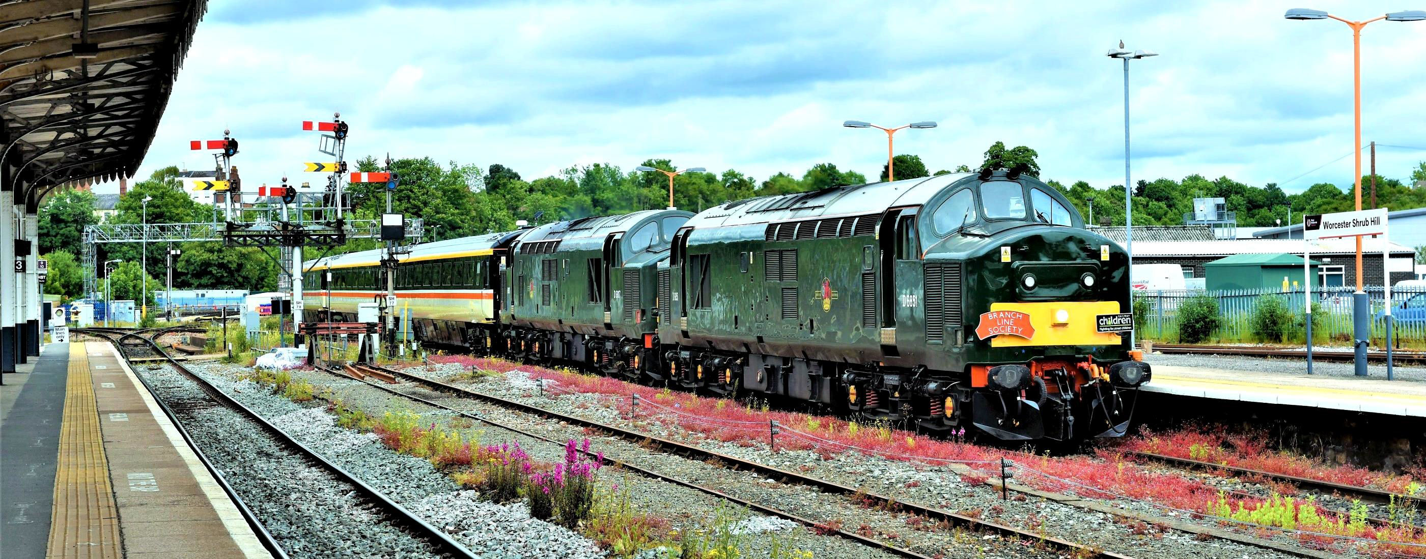 The 'Malvern Mountaineer' heads south through Worcester Shrub Hill P2, the middle line is the … Middle Siding.
