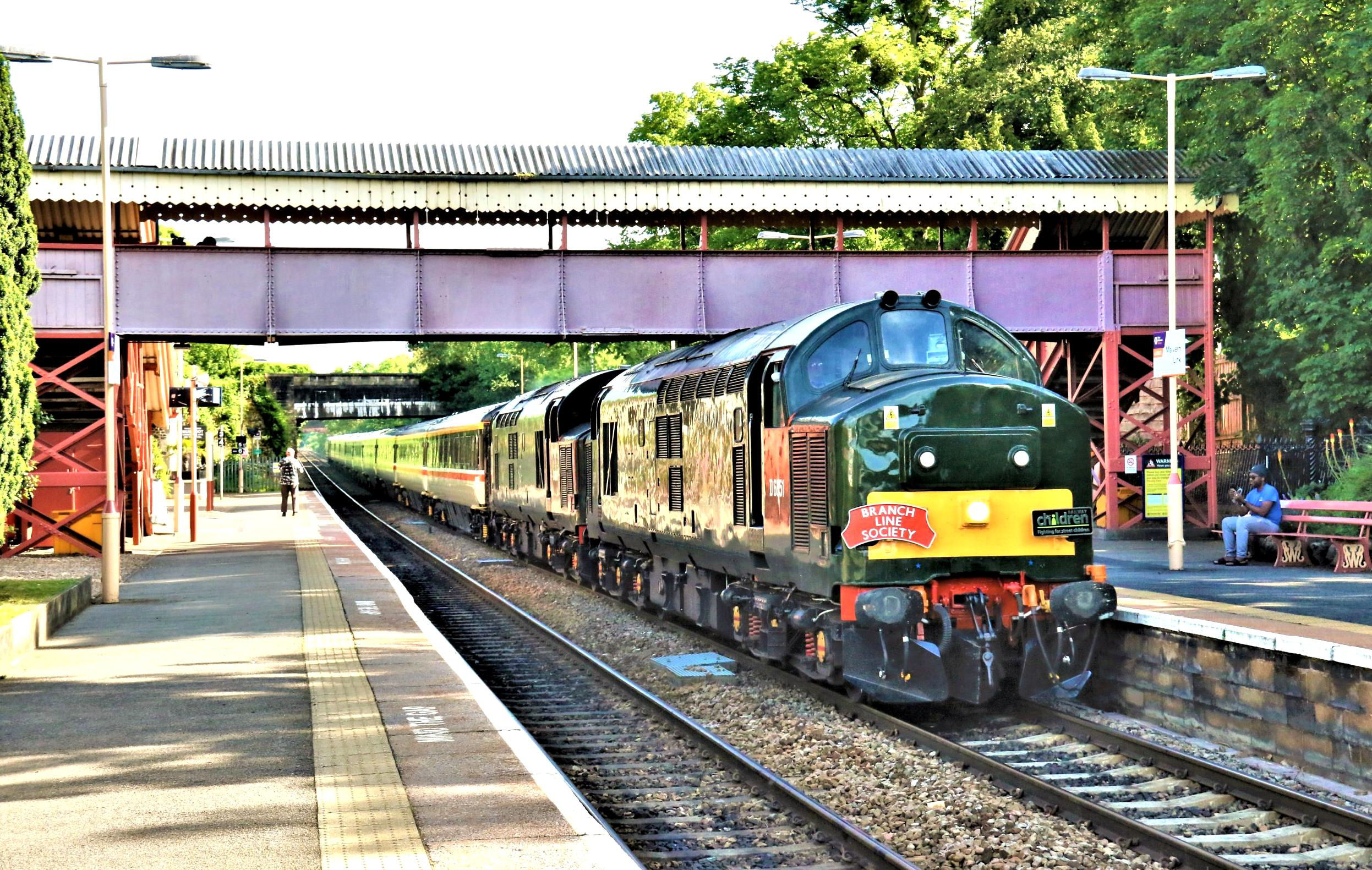 Earlier the same tour is coming off the Kidderminster line at Droitwich Spa (the Bromsgrove line goes off right). Far left is the Down Goods Loop which now has trackwork missing in the points at both ends.